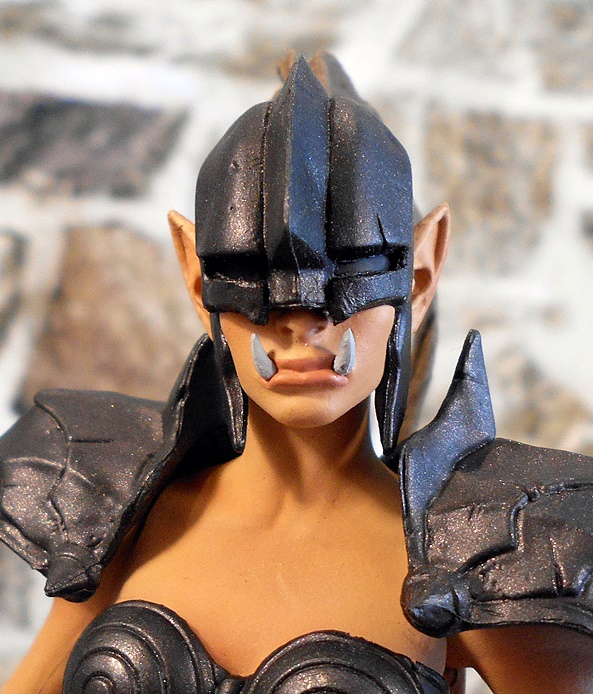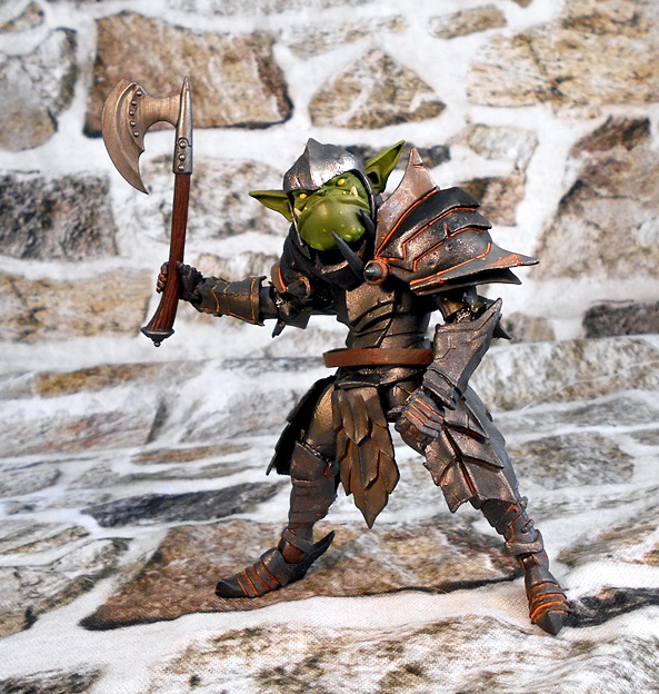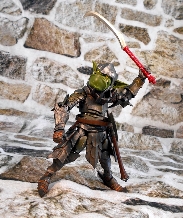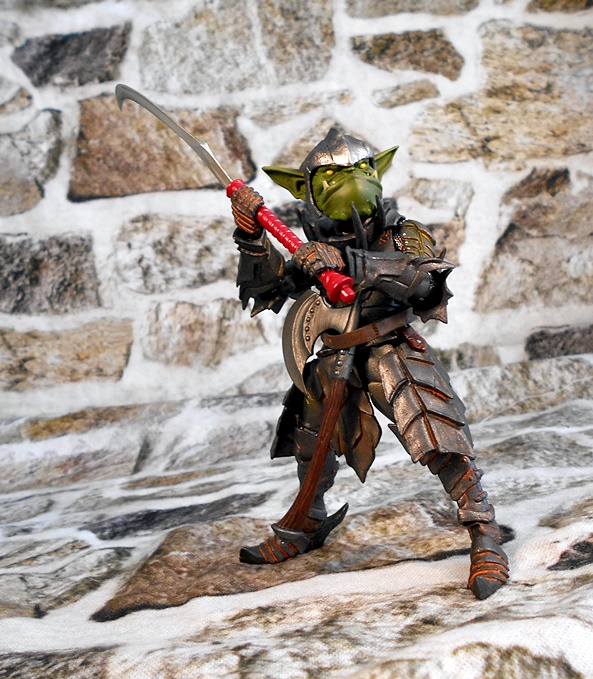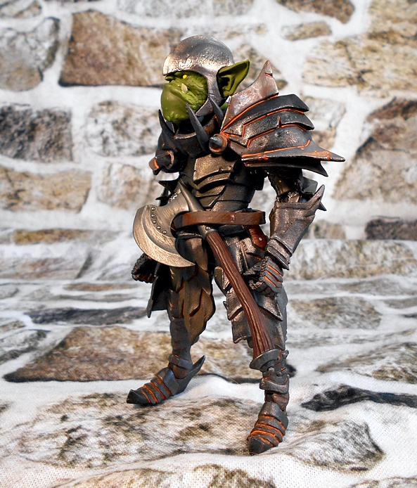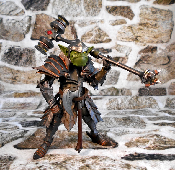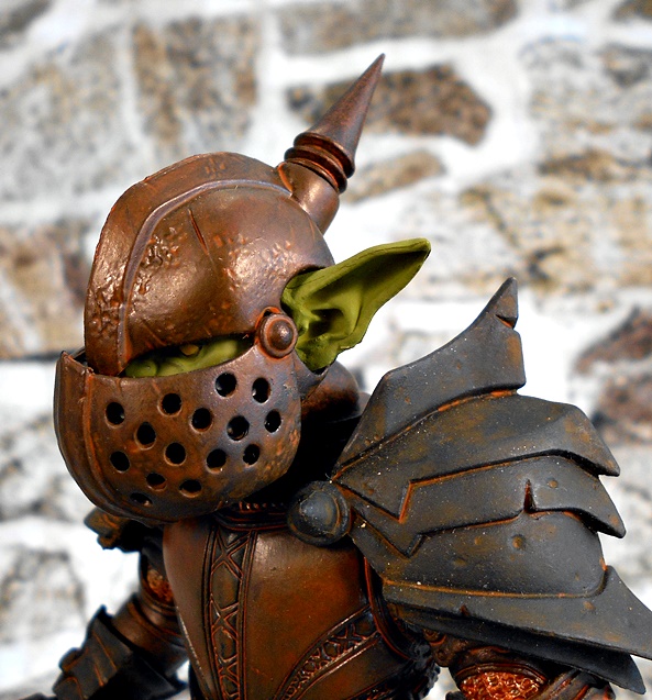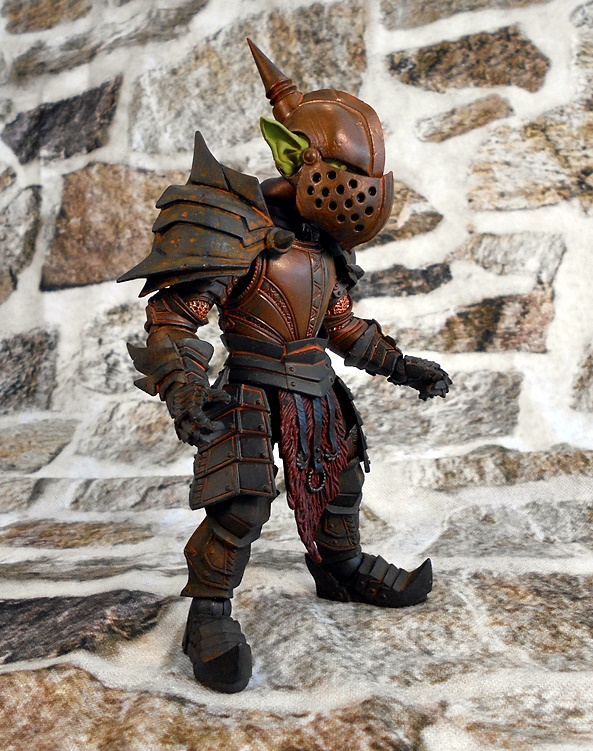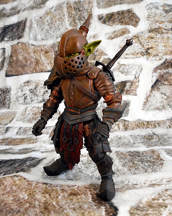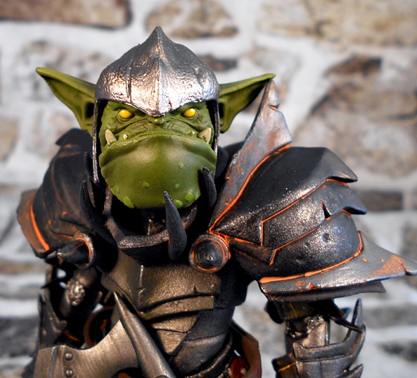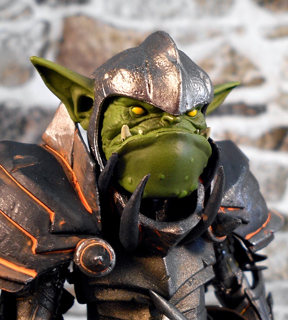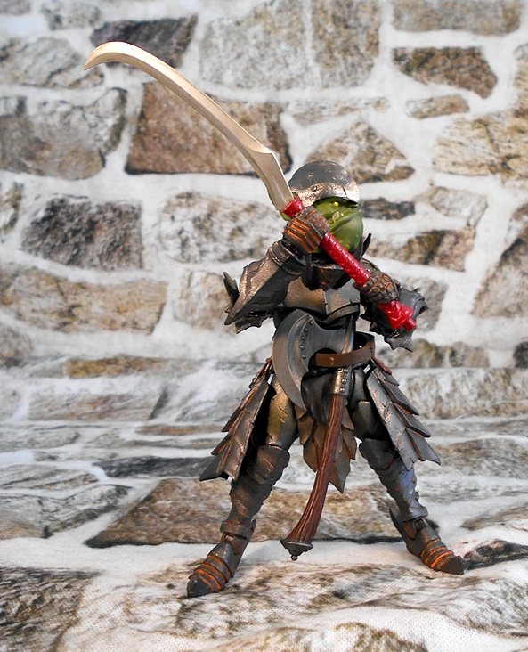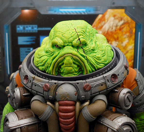 The murky dome can be a bit tricky to get off, but trust me it does come off! Removing it gives you a better look at Slogg’s disgusting melon. He kind of looks like The Gillman from The Black Lagoon hit up Five Guys a few too many times. There are so many gross folds in his skin that lead to that flappy mess of a mouth. His beady eyes peer out from beneath bloated brows, or at least one peers out. His left eye looks like it’s seen better days. There’s a scar running down the middle of it and the pupil is gone. Boy do I love the paintwork on Slogg’s noggin. It matches the rest of his skin, but also has some absolutely gorgeous gradient work where it wavers between darker green in some places and almost yellow in others. This portrait is a goddamn work of art.