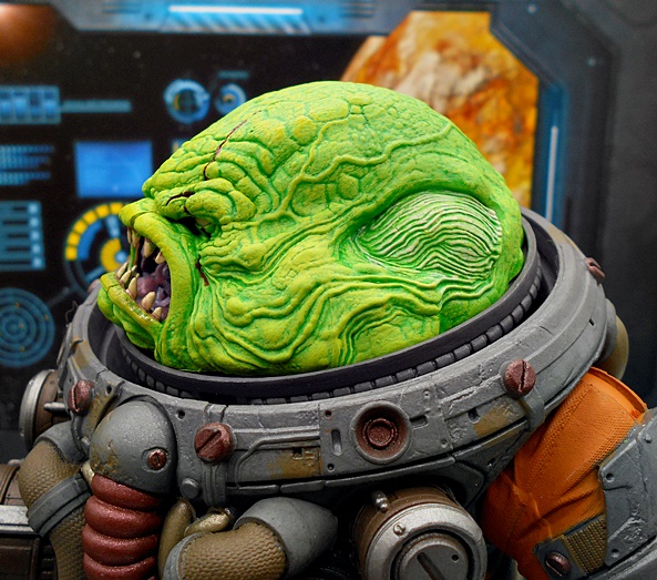 And if you like your green blobby space wardens a little more angry, T4H have you covered with a second head sculpt. And oh damn is he angry! This portrait has his mouth open showing his spikey teeth and even a bit of the insides in his disgusting maw. It’s an absolute crime that one of these heads has to sit in the box, so I may just wind up displaying it beside the figure on a riser or something.