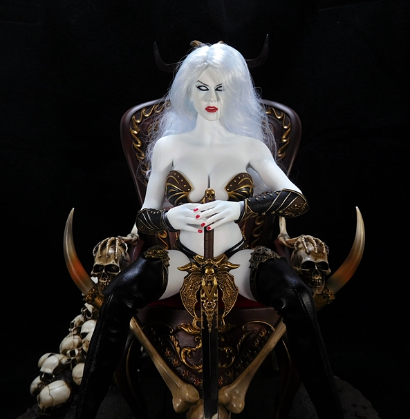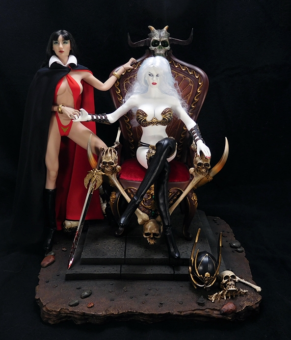 And before wrapping up, here’s a quick comparison shot of Lady Death with Hasbro’s Satana Hellstrom from their Marvel Legends line. They scale closely with one another, and I think Lady Death stacks up pretty damn well, although you could argue whether or not it’s a fair comparison. Marvel Legends are mass produced figures, which sell for about $20-22 at retail, whereas Lady Death is a collectible produced in a smaller quantity and sold for $50. Still, as I pointed out with the example of the Hack/Slash figure, these things don’t always work out. Hasbro’s figure may be less expensive, but they also have infinitely more experience under their belt. Either way, I think the comparison favors Lady Death!