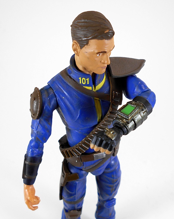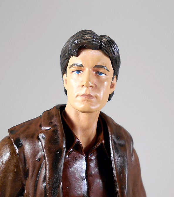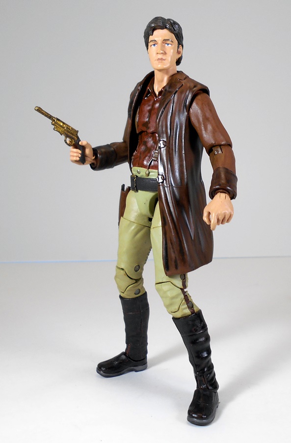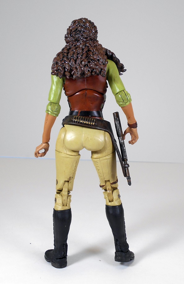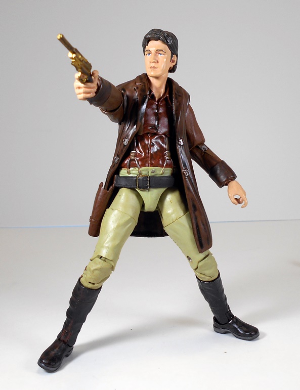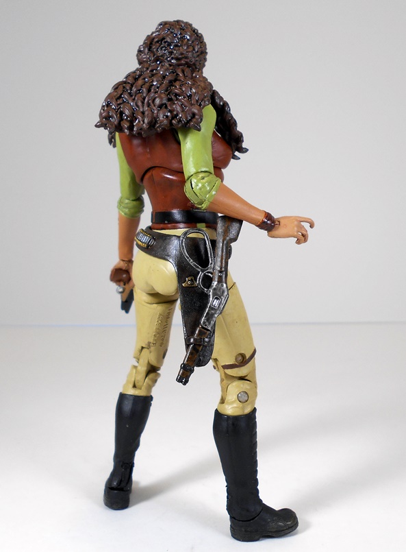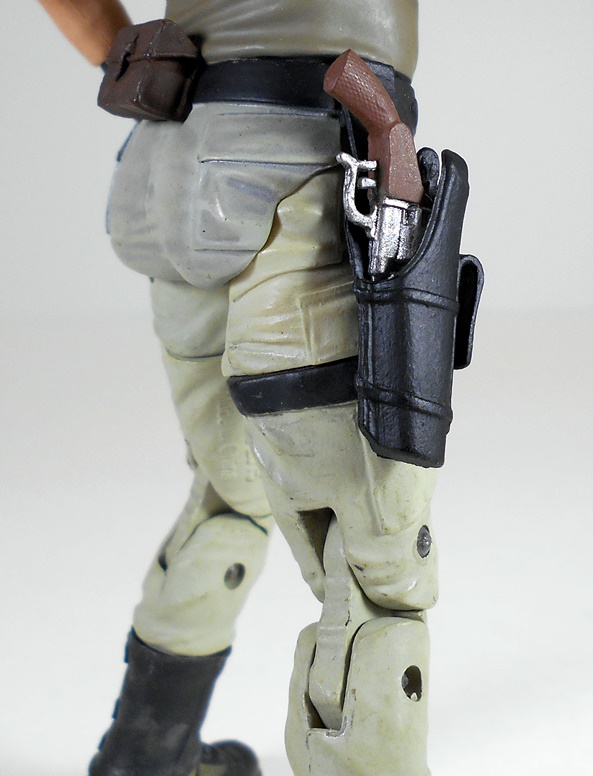 The gun belt features a row of of cartridges between the buckle and the holster, each individually painted and on the other side you get two replacement cylinders to act as speed loaders. The belt hangs loose enough to tuck his spare gun behind the buckle, just the way he wore it in the film. I really dig the detail on the golden spurs fixed to the backs of his boots and even the buckle and snaps on the boots are immaculately painted.