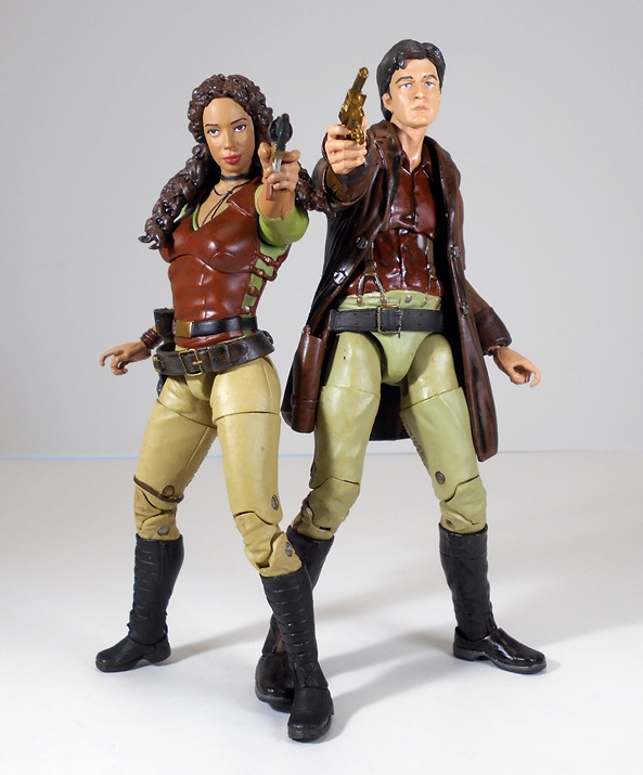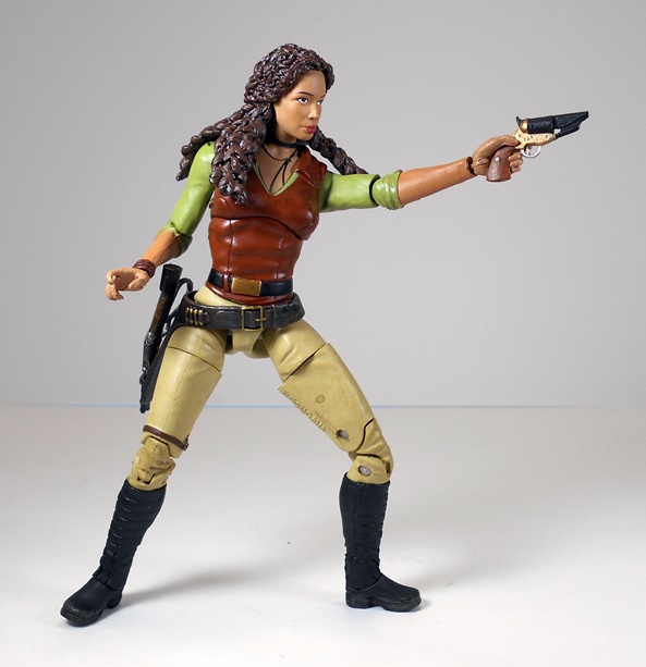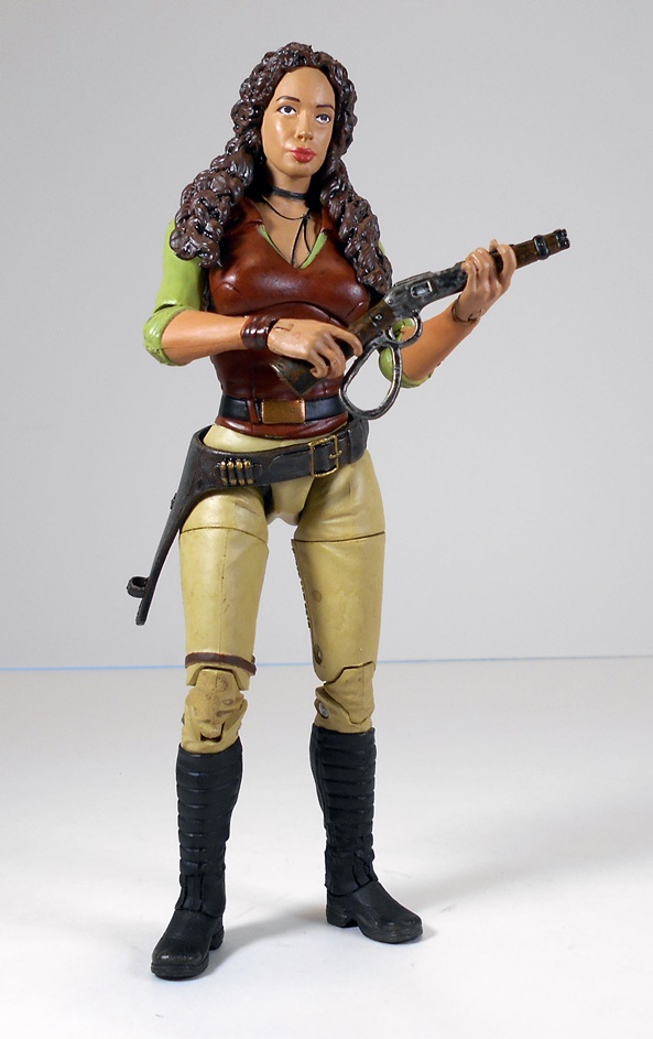 At least what we do get is great. Preacher comes with his two Remington revolvers: A New Army converted for .45 Long Colt which he used as his main weapon, and a M1858 Pocket, which he kept tucked in his belt as a back up. Both are beautiful reproductions of the respective pistols with excellent finishes and even tiny screws sculpted in. The cylinders on both do spin, but the hammers do not cock.