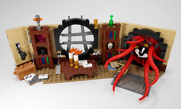 As you can see, a lot of the brick count in this set falls more into placed accessories than a meaningful build and that may disappoint some. The treasure chest and its contents, the various books and papers, all of these are just pieces that are placed around to add to the room’s clutter. Granted, it does mean you can easily customize the hell out of this set, but in the end I felt all the extra accessories made the build feel a little insubstantial. It also felt like this set should have been bigger. As far as I know, this is the only set we’re getting from Doctor Strange, and as a solitary set piece, I wish there was more to it. As it is, it feels way too narrow and confining.