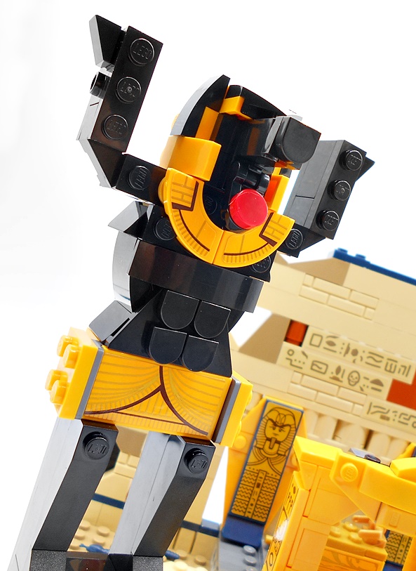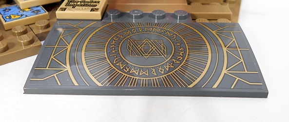 It’s worth noting that my set included two of the wrong pieces, for building one of the statues. If you look close you can see the two gray pieces that are holding the hips on the statue on the left, whereas the statue on the right is built correctly. It’s a lucky coincidence that the pieces they included were still able to be used in the build, even if it throws the coloring off a bit. I even went back through the instructions to see if I had used the wrong ones earlier, but nope. Anyway, I really dig the build on these statues and some of the creative uses of pieces for the abs and the face. Each uses three stickers to add some detail.