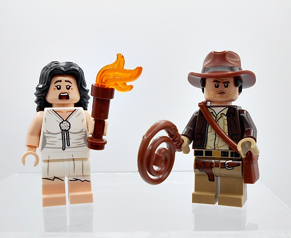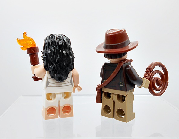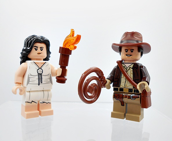 The set includes four Minifigs: Indy, Marion, Sallah, and a Mummy and each of these is excellent. Indy looks as iconic as can be with his printed leather jacket, satchel and fedora-hairpiece combo. He even has his holster printed on his belt. He comes with his coiled whip, and I actually got two of them in the set. They did a great job on the whip, as it’s flexible and the end can even be plugged into a stud. Marion has her printed dress with hairpiece and she comes with a torch to fend off all those snakes. Each of these figures have two printed faces.