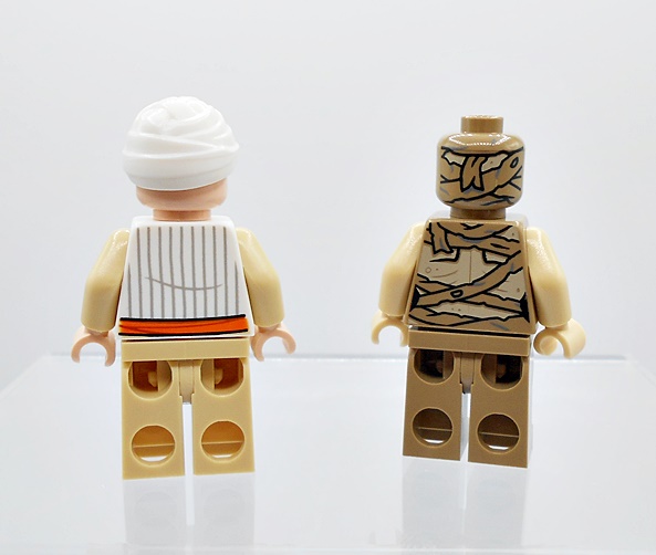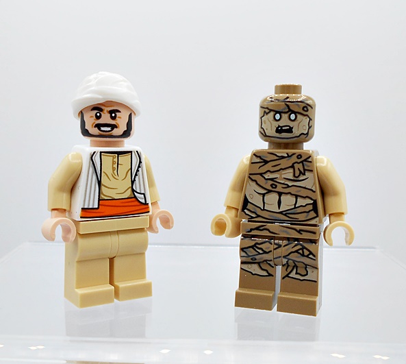 Sallah and the Mummy are also really well done. I do feel like they skimped on Sallah’s printing a bit as there’s nothing from the waist down, but he still looks good. He has a turban on his head and just the one face print. He doesn’t come with any accessories, which is a shame. They could have at least thrown in a shovel from some other set. The Mummy is suitably gross with some really intricate printing both front and back.