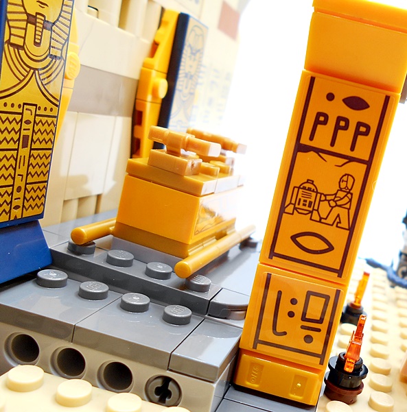 Speaking of detail, the hieroglyph stickers are fantastic, and one even recreates the R2-D2 and C-3PO cameo in the movie. I remember seeing that image in one of the books I got about the movie and thinking it was the coolest thing ever.