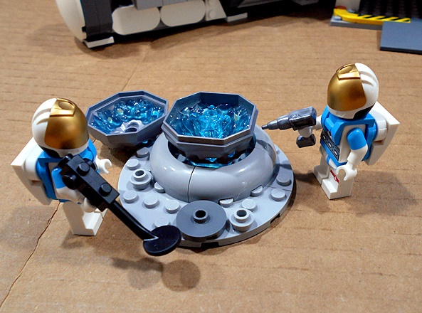 Speaking of dig sites, we get another mineral deposit, which is very similar to the one included with the Lunar Roving Vehicle. The big rock opens up to reveal blue crystals inside, one of which can be removed and taken back to the Research Base where it infects the crew with a bizarre alien radiation that turns them into violent rage zombies. Nah, just kidding. I’m sure they’re perfectly safe.