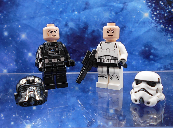 The Stormtrooper and TIE Pilot each come with blasters and they have printed faces under their removable helmets. The TIE Pilot looks very mean and nasty while the Stormtrooper only looks slightly cross.