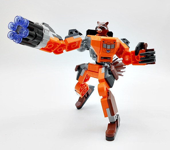 Of course, the big attention getter here is the giant 6-stud cannon that he has in place of a right hand, because we all know how much Rocket loves his guns!