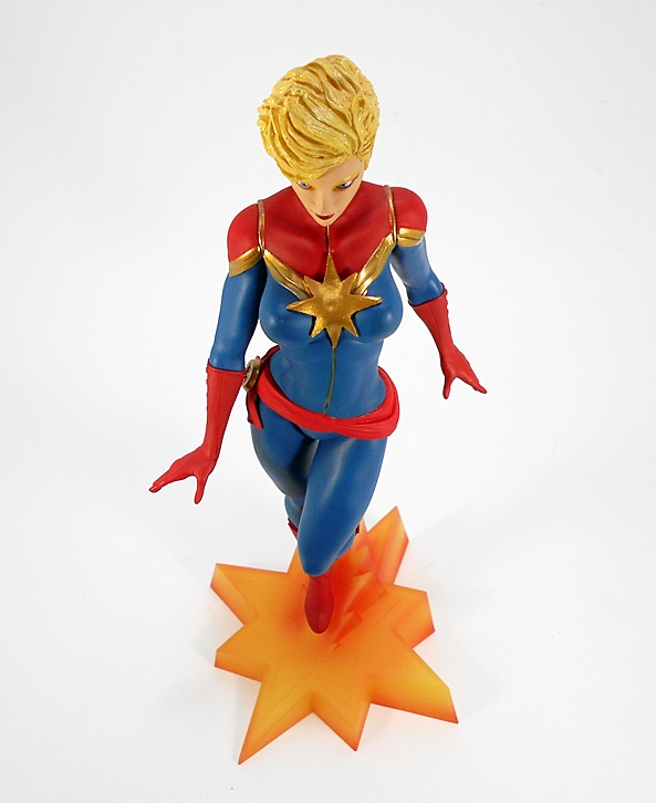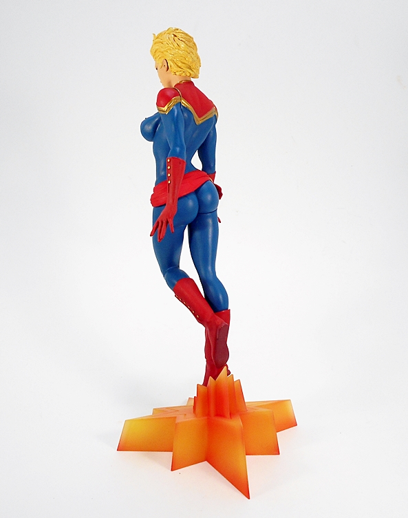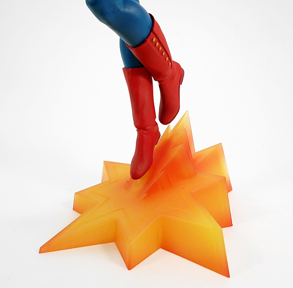 Inside the Styrofoam, it looks like something that’s been cocooned by spiders. As expected, there is some unwrapping and assembly required here, and this phase tends to be the most stressful of the un-boxing. Are all the parts going to be OK? Is everything going to fit together properly? In this case I’m happy to say, Yes and Yes. Assembly includes attaching the figure to the base with a key tab that protrudes from her butt. Next up, the hands (each holding a gun) gets attached and held by magnets. The slot machine arm keys into the side and attaches to the toe of Domino’s boot with a magnet, and finally the head attaches by magnet as well. When all is said and done, this is a very solid and pretty heavy piece all ready for display. I’ll also note here that there is no mixed-media in this figure, so the entire costume is part of the sculpt.