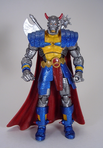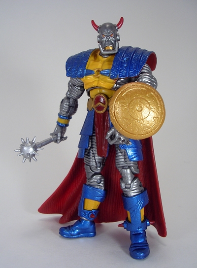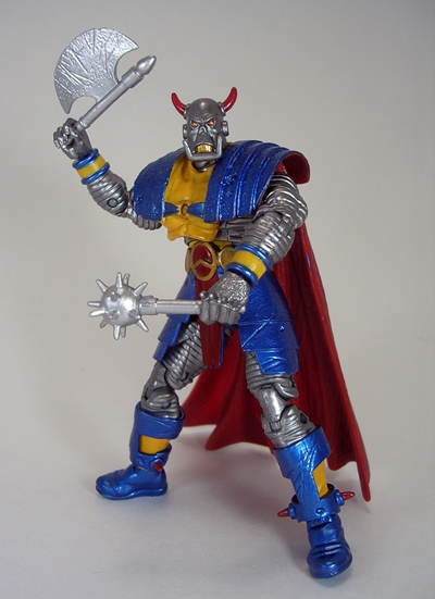 And so with the addition of Grim Reaper to my Marvel ranks, I can tick another important villain off my Marvel action figure want list. Overall, I think Hasbro did a nice job with this guy, particularly with that wonderful portrait. The one sticking point for me (no pun intended) remains the lack of a swivel in his scythe. It seems like it had to be pegged in there anyway, and I’m guessing they opted to glue it in, which is a real shame. Besides the ability to rotate it for greater posing, it would have been cool to have it detach as well. It’s not a big deal when he’s standing on the shelf, but it sure puts a damper on the fun when posing and playing around with him.