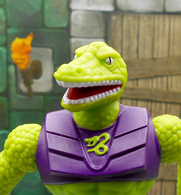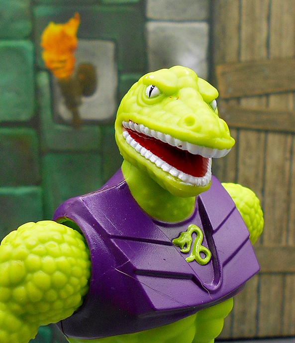 This head is just baffling to me. Again, it’s a cartoon lizard not a crab. I think the head sculpt is great for what it is and it sure sells the Filmation aesthetic. His yellow eyes are rather similar to Spikor. I really dig the slightly open mouth and the exposed fangs. It’s a fine portrait, but it doesn’t pay any respects to the original vintage design, and that’s a shame.