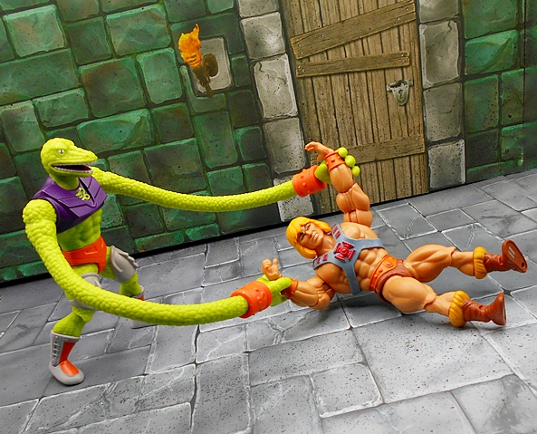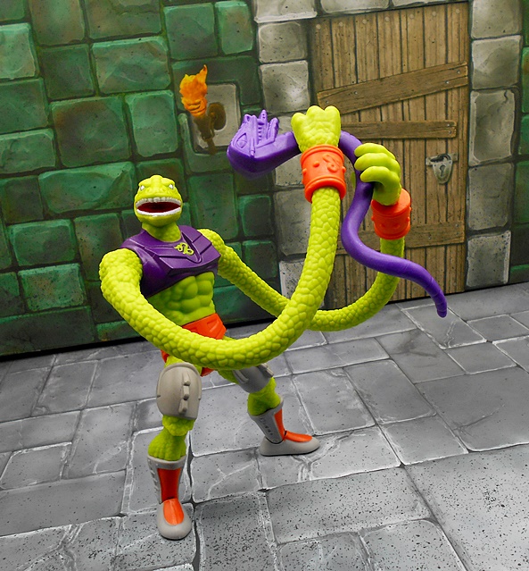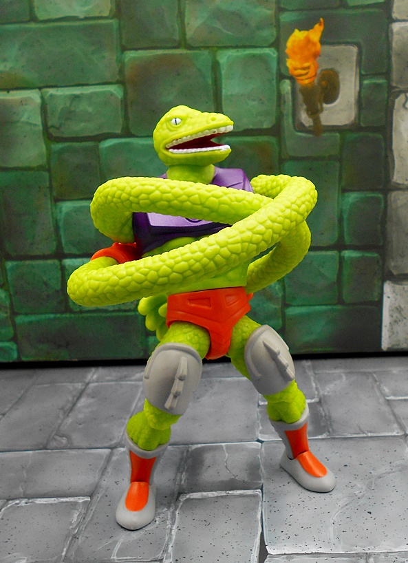 I don’t have a huge problem with the head, as it fits the Filmation aesthetic pretty well. A lot of these guys were made to look a little more human and relatable. Vintage Spikor had much more of a monster face with a bizarre nose and folds of skin. At least Toony Spikor still has the yellow eyes and fangs. But once again, he lost a lot of spikes off his noggin.