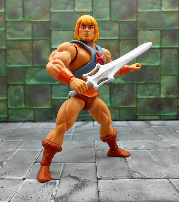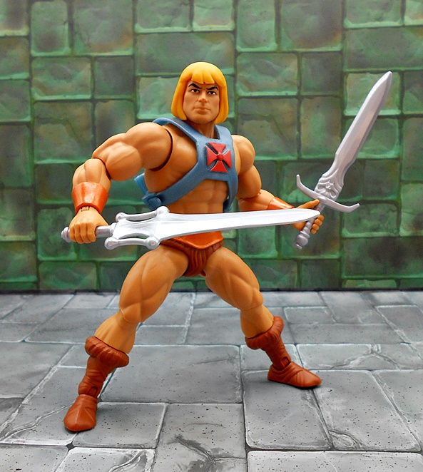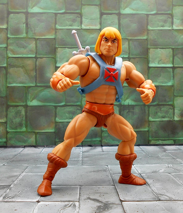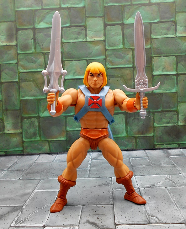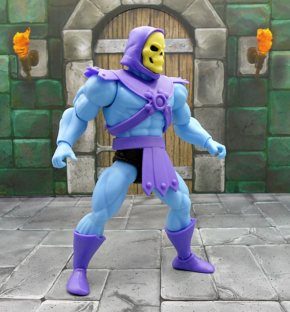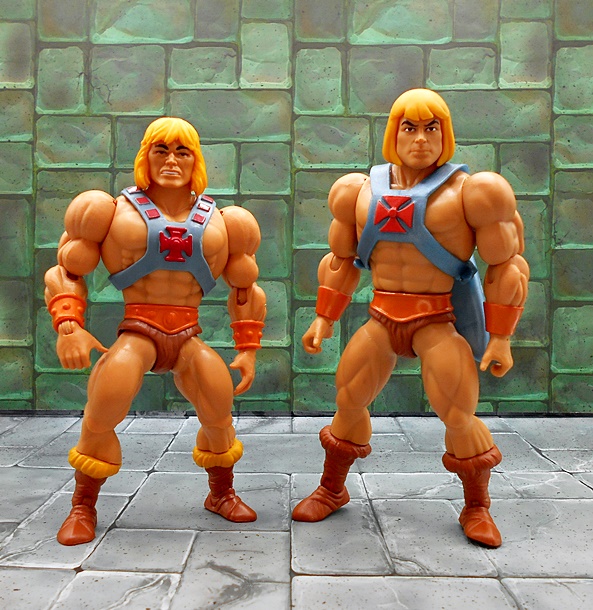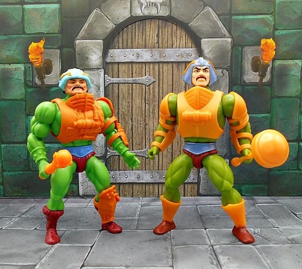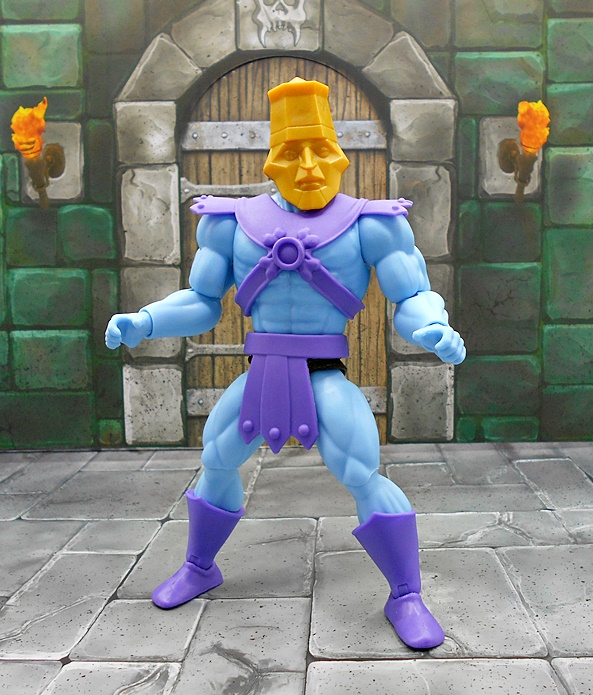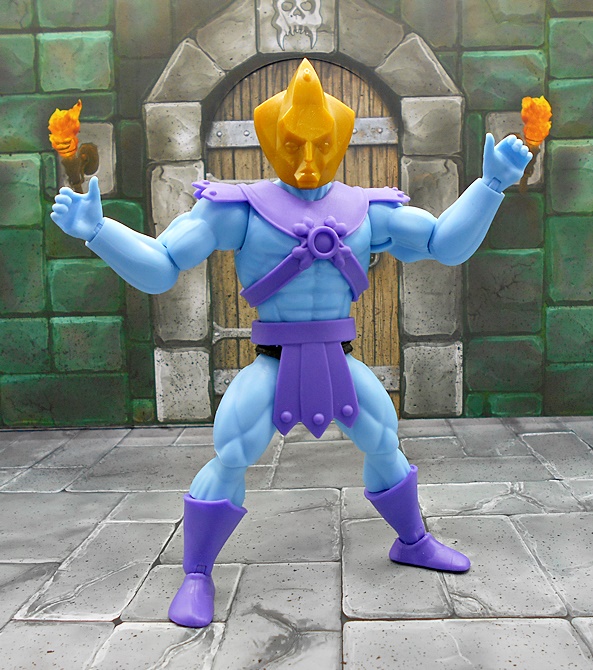 Poor Spikor lost a lot of spikes and gained a really garish deco. He looks like he has at least 60% less spikiness and my guess is it’s because the animator didn’t want to draw all that shit. He’s supposed to be the Untouchable Master of Evil, but I can see plenty of places I can touch him without getting stuck. Otherwise, you get the usual smoothing of details, like the studs removed from his belt and wrist cuffs, and the the studs running down the middle of the vintage figures chest are now replaced by a smooth strip that descends from a collar around his neck. And then there’s the colors! The muted two-tone purple of the vintage figure is now replaced with dark purple, bright blue, and iridescent mauve! I don’t know, it just comes off looking like a kit-bashed figure with mismatched limbs to me.