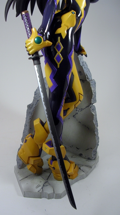 Lastly, we have the two versions of the sword. The unsheathed version features a silver blade, although no painted hamon line, and a nicely detailed grim and tsuba. The version in the scabbard has the option to pull out the hilt piece if you want her holding both the loose sword and the scabbard, which is a great little touch. The scabbard doesn’t attach anywhere to the figure, but then I don’t remember her ever actually wearing it, so I’m going to say that’s accurate.