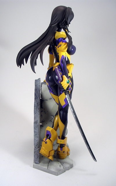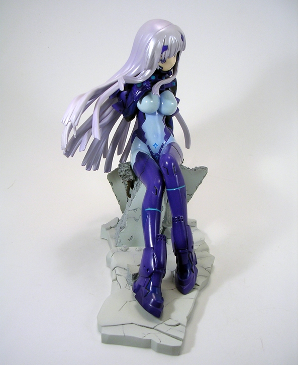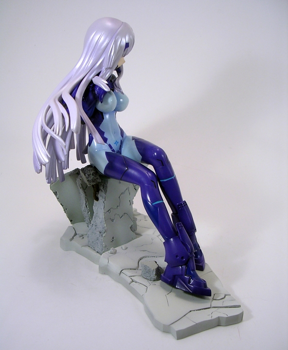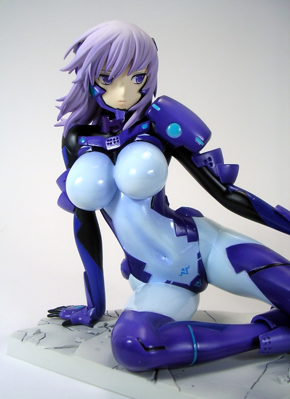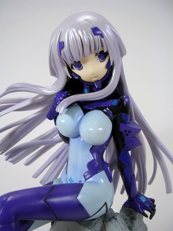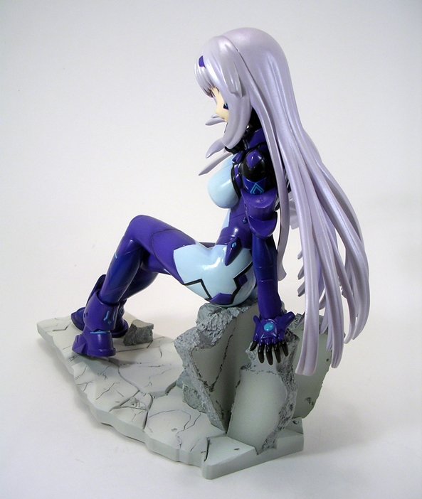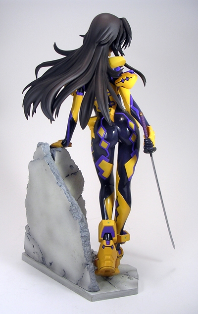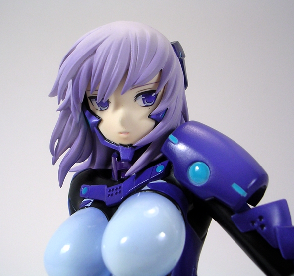 Yui comes clad in her Type-00 Fortified Pilot Suit, which is recreated here in splendid detail. It’s a design that manages to preserve her shapely curves and yet adds on some more angular armor bits in strategic places, like her boots, wrists, and shoulders. Every part of the suit’s detail, including the panel lines, are part of the sculpt and the mustard, black, and purple paint is beautifully applied with just the right amount of sheen. The only quality issue I can see on my figure is a little nick to the paint on her left knee.This is easily my favorite, and arguably the most distinctive, TSF pilot suit in the series, and this figure nails the look perfectly.