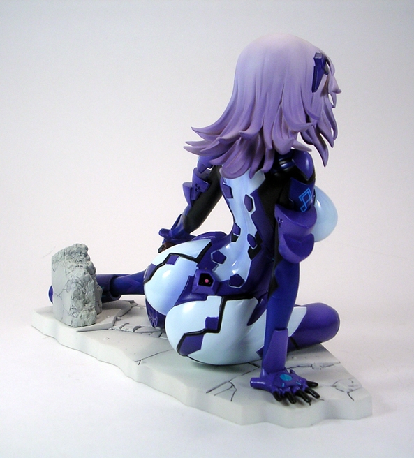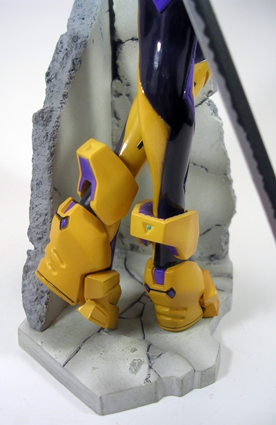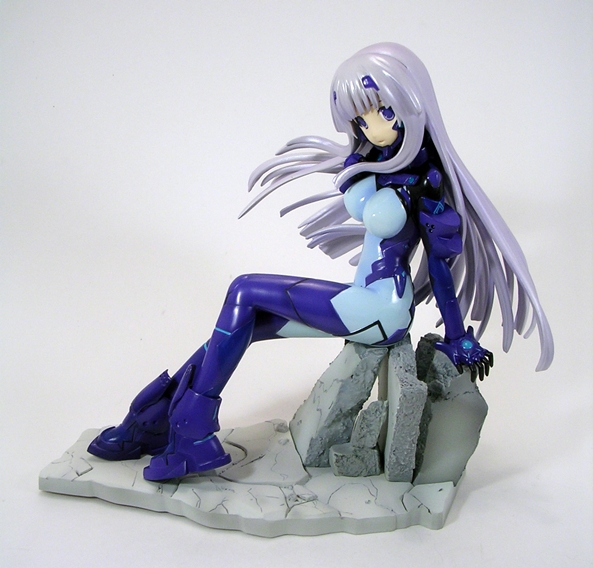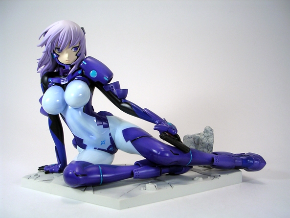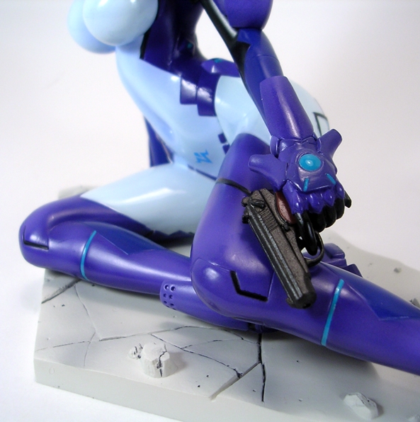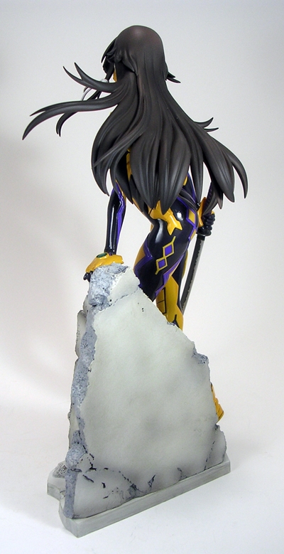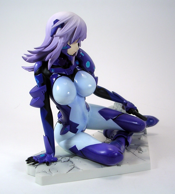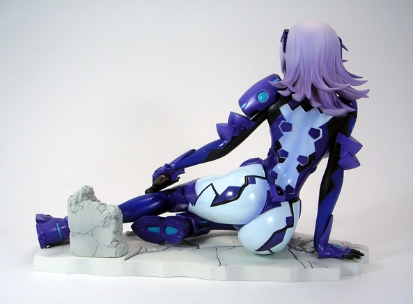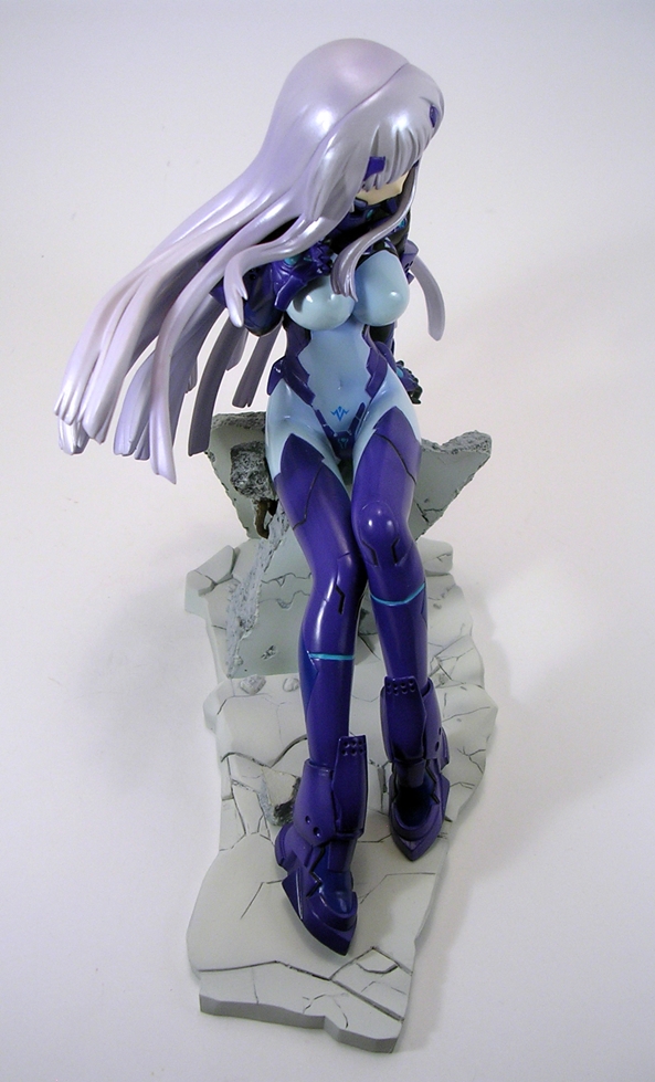 Yui comes clad in her Type-00 Fortified Pilot Suit, which is recreated here in splendid detail. It’s a design that manages to preserve her shapely curves and yet adds on some more angular armor bits in strategic places, like her boots, wrists, and shoulders. Every part of the suit’s detail, including the panel lines, are part of the sculpt and the mustard, black, and purple paint is beautifully applied with just the right amount of sheen. The only quality issue I can see on my figure is a little nick to the paint on her left knee.This is easily my favorite, and arguably the most distinctive, TSF pilot suit in the series, and this figure nails the look perfectly.
