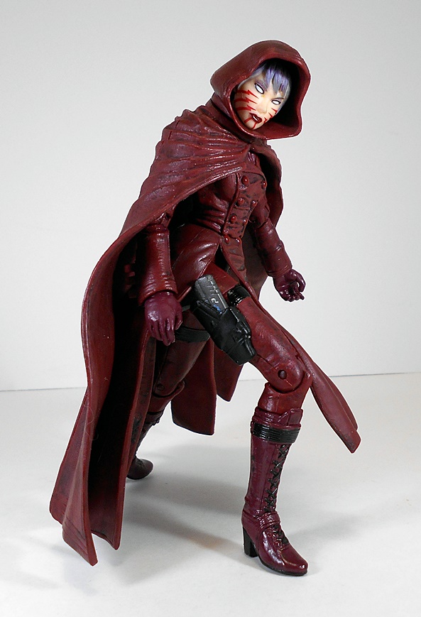 And damn what a beauty she is! Batgirl’s (former) New 52 costume is a favorite of mine because it doesn’t stray too far from the traditional. Fans old and new should be able to get behind this design. Of course, it is New 52, so you do get the sculpted panel lines in the body suit that suggests it’s more armor than mere latex. I like the ribbing inside the thighs, under the arms, and in all the places where a lot of flexing would take place. The yellowish-gold boots and gauntlets have scalloped edges and match the belt, bat symbol, and the interior lining of the cape. All of the yellow has a slight hint of glossy sheen to it, which contrasts nicely with the more matte finish of the black suit. The paint on this piece is very clean, but I’ve come to expect that. Truth be told, even with eight of these ladies on my shelf, I haven’t had any notable paint issues with this line, so when I say the paint is especially good on Batgirl, it’s intended as high praise.