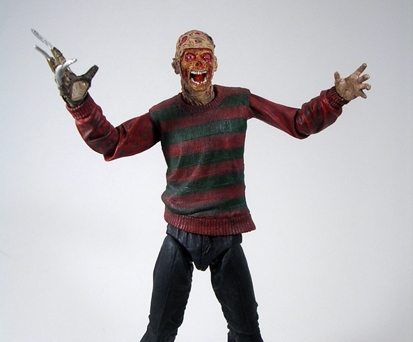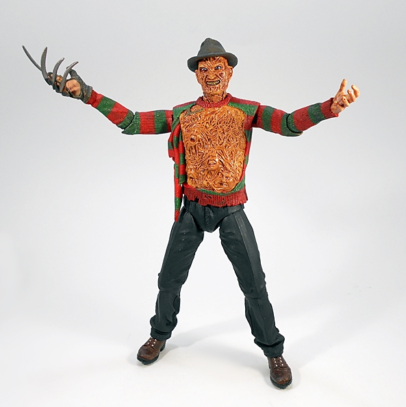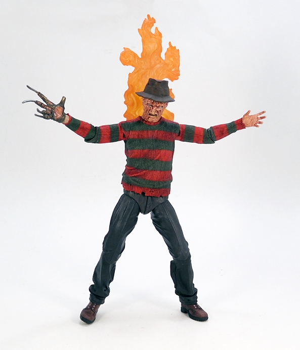 Does it sound like I found this figure a little wanting? Well, I don’t want to convey the wrong message, as I absolutely love this figure. But at the same time, I feel like it isn’t one of NECA’s strongest Jason releases. The body sculpt is great, I really dig the choice of masks, and while the unmasked portrait isn’t my favorite, it’s still solid work. The accessories, on the other hand, well that’s where this one begins to lose me. The flame effect is cool, but I don’t think including repaints of the same machete was all that necessary, nor is the teddy bear. The obvious missed opportunity here would be a pair of Freddy’s severed arms. Hell, they could have just recycled them from one of the Freddy figures and did a little re-sculpt at the shoulders. Still, in the and he’s a solid addition to the Jason lineup, and I’ll probably be picking up the one from the remake next.