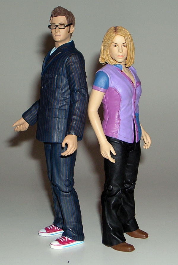 The dress is soft plastic and layered onto the figure, which allows for a surpisingly functional waist swivel. I also like the work they did on her tool belt. All the little bits and bobs are nicely sculpted and painted and the belt itself just hangs loose around her waist. The paint and detail on Oswin’s sneakers are also well done.
