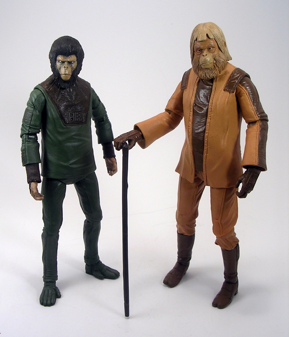 This pair of militant gorillas comes in a window box with a deco very similar to the single boxed Gorilla Soldier. It shows off the figures very well and it is totally collector friendly, which is a good thing because there’s a fair amount of accessories to keep track of. While these soldiers did appear in the original Planet of the Apes, it wasn’t until Beneath the Planet of the Apes that we got to see them mobilized en masse. Those scenes are still my favorite thing about that film.