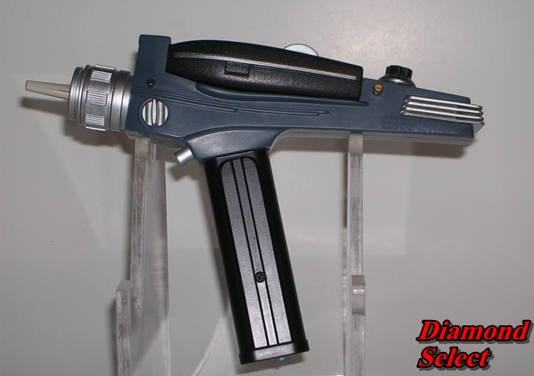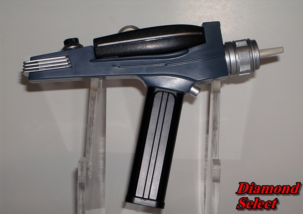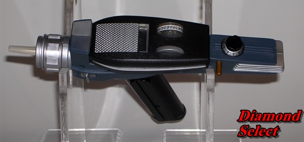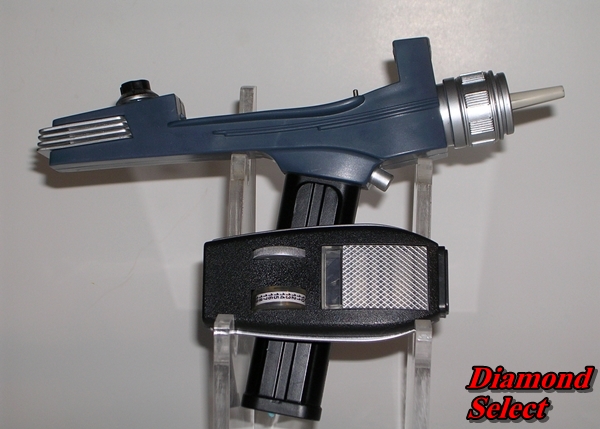 And here’s a quick comparison of the new Playmates Phaser with the Diamond Select version from a little while back. DST’s version is an absolutely beautiful toy and a much more faithful reproduction of Starfleet’s sidearm. It’s proportioned much better and you just can’t beat having the removable Type I unit with it’s own electronics. I also greatly prefer the blue-gray finish to the body of the Type II housing. It’s a shame these aren’t still on the market, and I’d love to see DST reissue these. OK… Let’s move on to the Communicator.