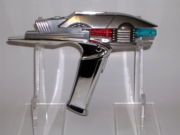 Pike isn’t heavy on the accessories, but you do get the necessary basics. There’s an equipment belt, a phaser, and a communicator. The belt is easily removable and has a holster for the phaser and a slot for the communicator. The phaser is a very nice sculpt and painted in metallic silver. The communicator is just a block of plastic with a sculpted disc and Starfleet emblem. I’m not really a fan of the Abramsverse communicators. You also get a very basic figure stand sculpted to look like the Starfleet insignia. Only one of the figure’s feet are pegged for it. It works, but it’s rather awkward. I would have preferred just a straight disc stand.