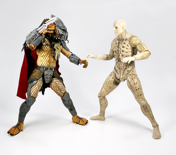 It’s no secret that I’ve been a big fan of NECA’s modernized Kenner Aliens, and now I can happily say that their magic works on Kenner’s Preds just as well. Lasershot is a great looking figure and lots of fun to mess around with. He also displays well going up against those Kenner Aliens or even with any of the other NECA Preds on my shelf. The addition of the LED targeting system is a particularly nice bonus, especially since at $27.99 it didn’t really drive up the cost of the figure that badly. Indeed, I’d love to them revisit the gimmick in some of their future Predators. I’ve been trying to be a little more selective about my Predator purchases, because of space limitations, but when I saw this guy on the shelf at Target he just had to come home with me, and I’m glad he did.