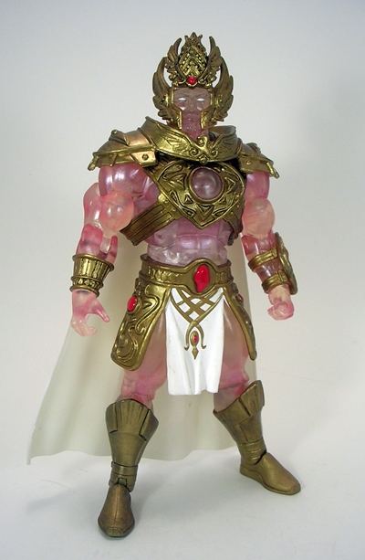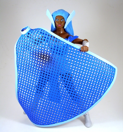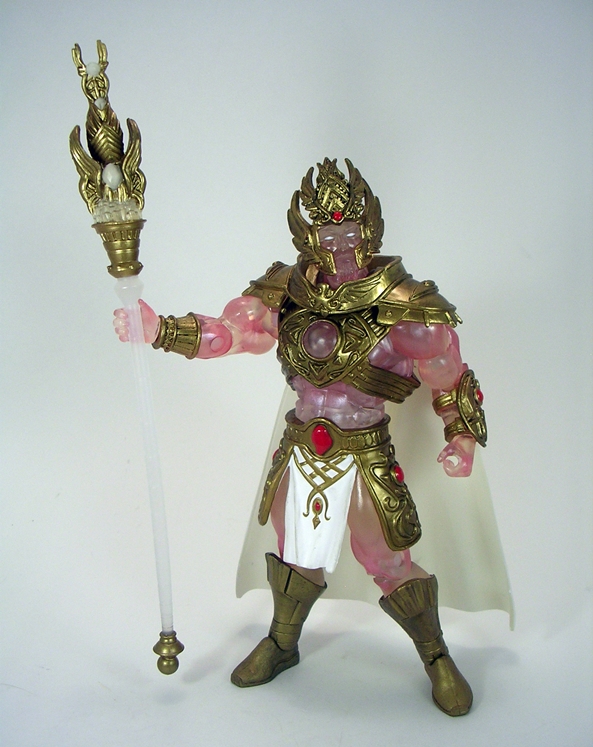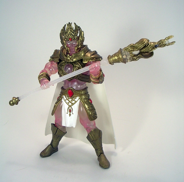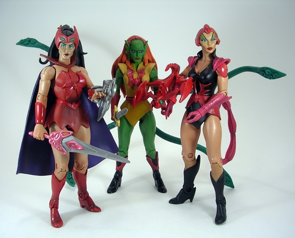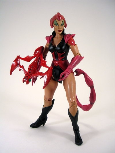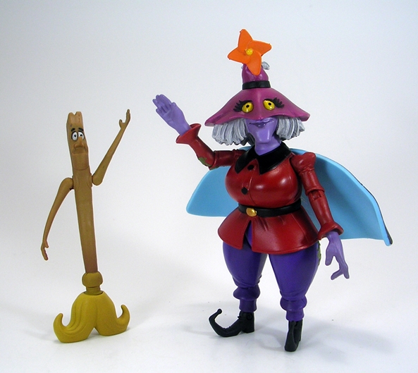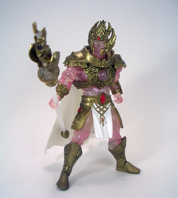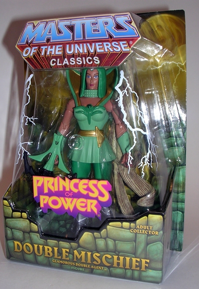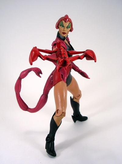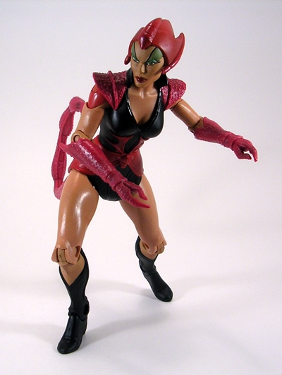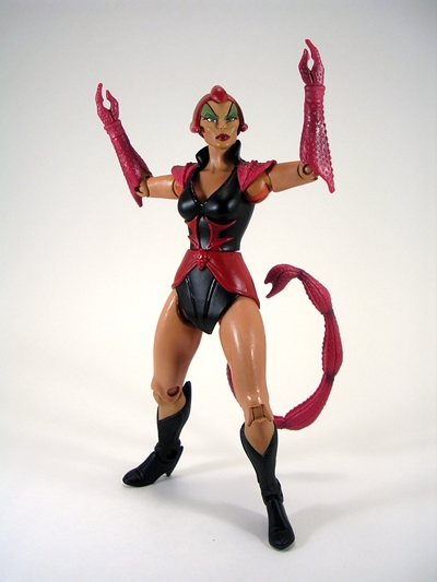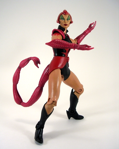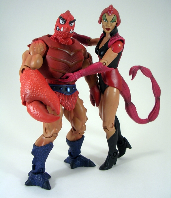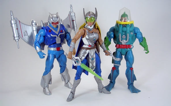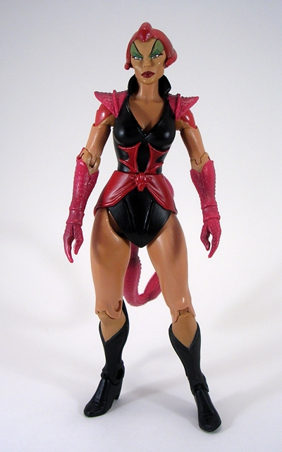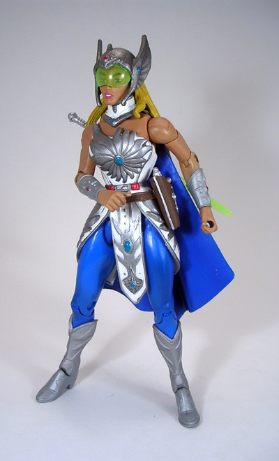 But Mermista’s got legs and she knows how to use them! That’s a little ZZ Top for you younger folk! To swap the tail you just pull her apart, the break is at the waist, in a fashion similar to King Hsss and then pop on the set of legs. In humanoid form, Mermista sports a pair of green boots and arm bracers, and a rather short blue skirt with an ornately sculpted silver belt. She has a green top with a pair of stereotypical clamshells for her booberz and the magical necklace spoken about in her bio is sculpted right onto her neck. All in all, her humanoid costume is rather simple and understated but I like it a lot.