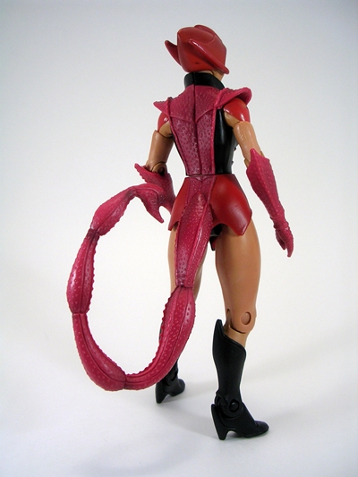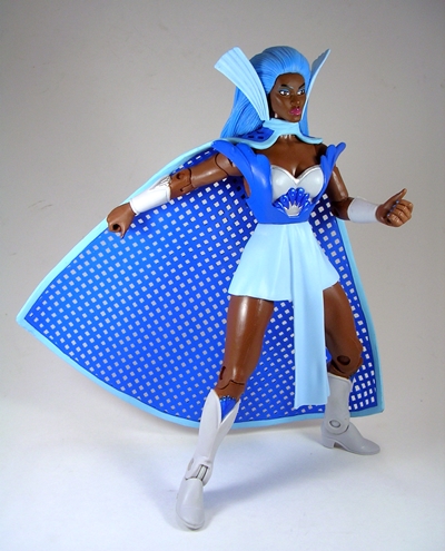 Despite her swappable nether regions, in humanoid mode Mermista features all the articulation we’ve come to expect from the ladies of The Great Rebellion. The arms have rotating hinges in the shoulders, hinges in the elbows, and swivels in the biceps and wrists. The legs are ball jointed at the hips, have hinges in the knees and anles, and swivels in the hips. There’s a little bit of a rocker to the ankles, but no swivel in the lower legs. She can swivel at the waist and has a ball jointed neck. Thanks to her extra short skirt, Mermista has great range of motion in her hips, much better than most of the other laides, which is kind of ironic because she has a tail most of the time.