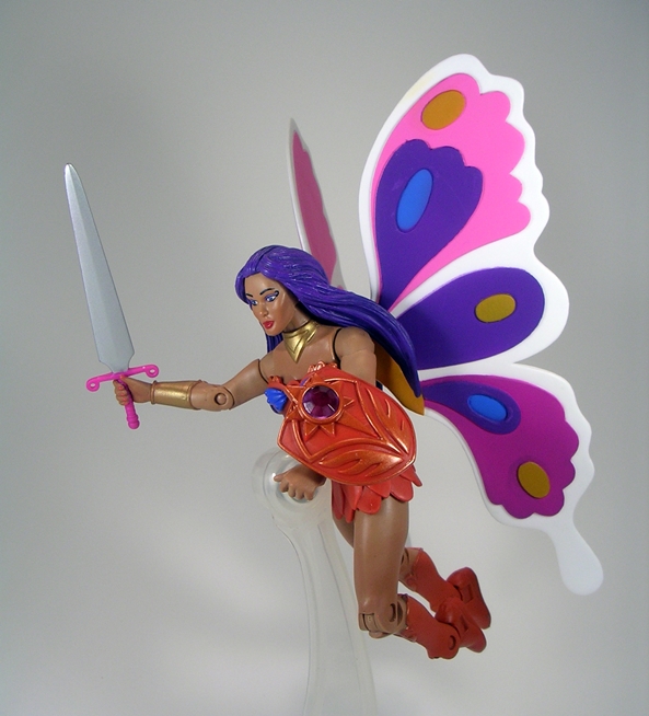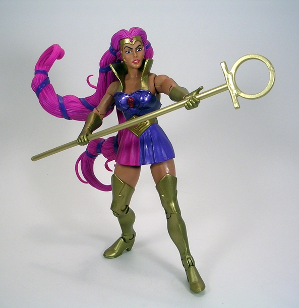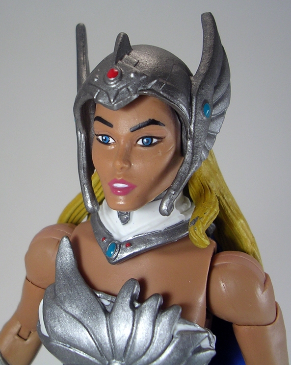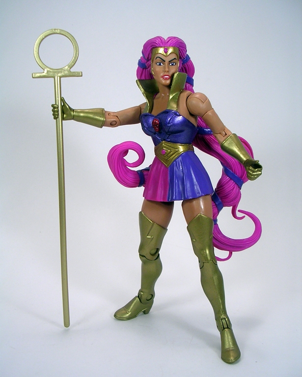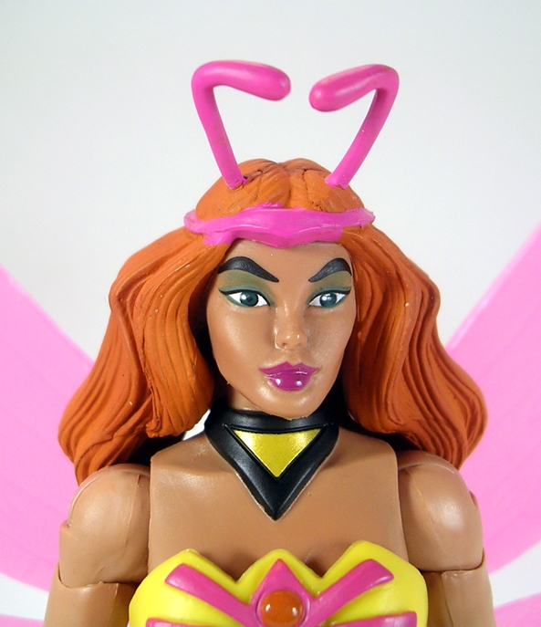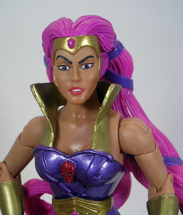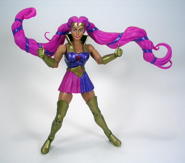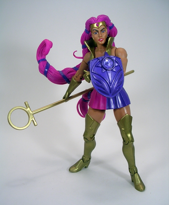 The portrait here is possibly one of my favorites in the Princess of Power line. It doesn’t really fall into the sameness that I’m always griping about between all the ladies’ faces. There’s just something about the facial structure that stands on its own and makes her especially attractive. The paint on her eys and lips is nice and clean and she has a great sculpted head of hair that sweeps down past her shoulders in curls.