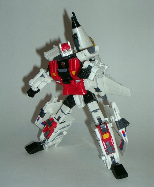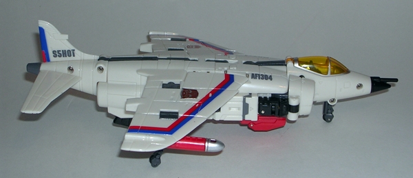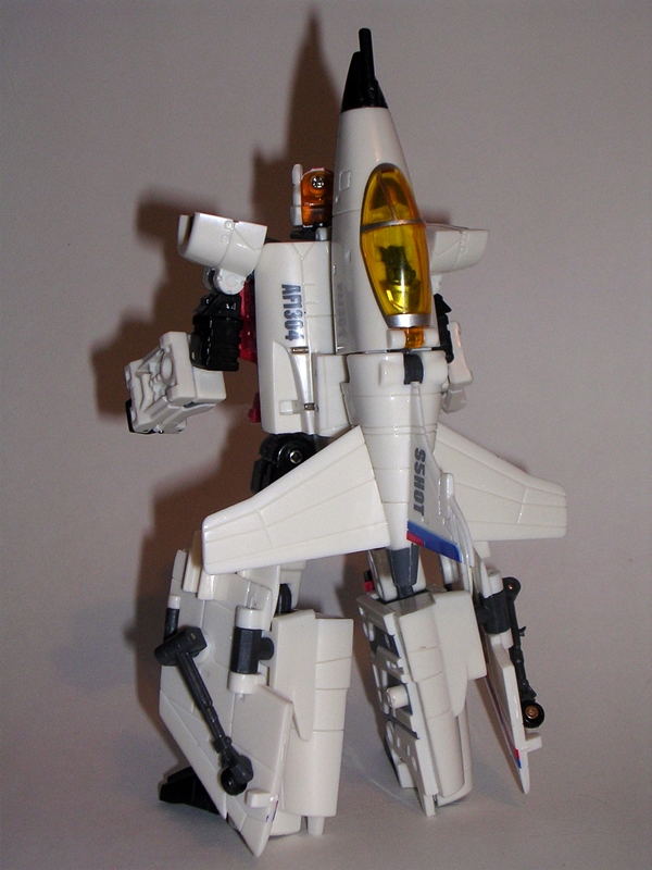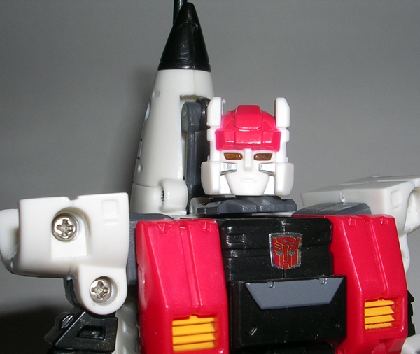 If I could apply a single phrase to sum up Uranos it would be “look but don’t touch.” I really dig the way he displays, but he’s so darn fragile in combined mode that I was anxious to get him separated back into his individual bots. So much so, that I snapped some quick pictures and was done with it. Granted, I’m rarely ever satisfied with the results of my poor photographic skills mixed with my ancient camera, but in this case the photo shoot was just a disaster. I really wanted to get some shots that made this guy look as great as he does on the shelf, but between him falling over and me not wanting to break him, I just decided to go with what quick snaps I had and be done with it. I think that tells more about the combined mode than any picture could.