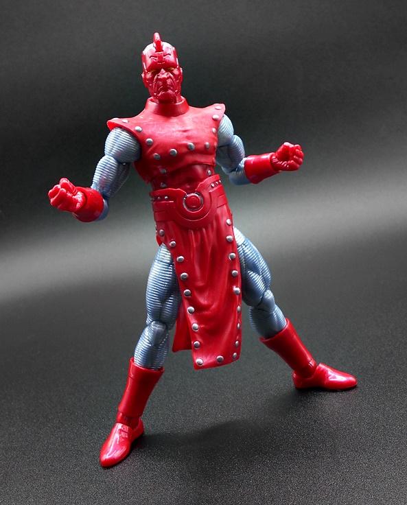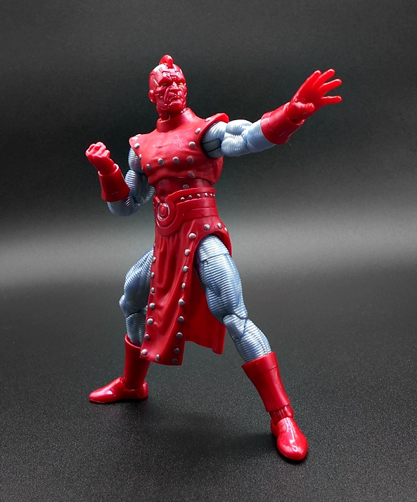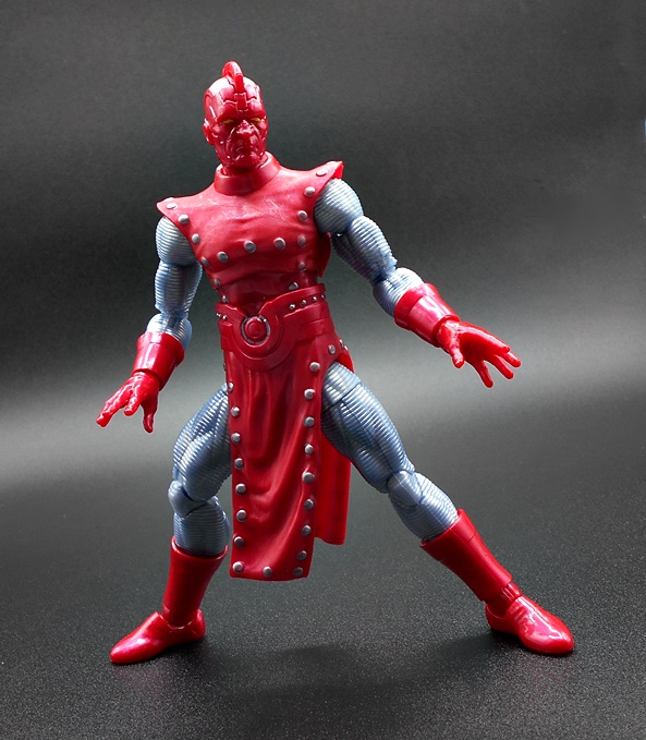 Another banger of a Kirby villain with a batshit crazy past, The High Evolutionary really transcends The Fantastic Four, but it’s still nice to get him in this style packaging. Wyndham comes sporting his silver exo-suit, which is characterized by tight horizontal ribbing and some fine muscle tone. He has bright crimson gauntlets and boots, and a matching tunic and sash with a wide and spiffy belt, all decked out in silver studs and some pointed shoulders to look extra imposing. I do like the subtle variety found in the matte plastic used for the tunic and the glossy stuff used for the boots, but I’m not fond of the creases we get from the molding process with this particular plastic. Still, overall this guy looks great!