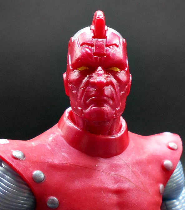 The head sculpt is solid, but is ultimately let down by the quality of this plastic. It does have a nice glossy sheen, but it doesn’t hold the sculpted details very well. As a result all those lovely panel lines just end up looking rather soft. We also get some more of the molding creases. On the plus side, the yellow eyes look decent, and I love the silver painted panels on the top of his head and the cut-outs in his mohawk. The close ups hot here also shows off some of those unfortunate creases in the tunic’s plastic. It’s certainly not as bad to the naked eye when you’re just holding the figure in hand, but it still somewhat mars what would otherwise be a gorgeous figure.