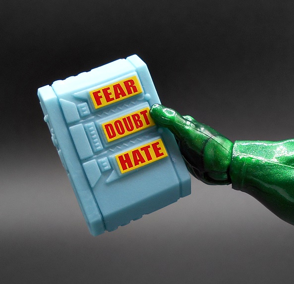 You get one accessory with Psycho-Man, and that’s his Control Box. It’s a pretty simple sculpt, but a nice looking piece of kit, with the emotions, HATE, DOUBT, and FEAR clearly labeled on it. His right hand is sort of designed to hold it, but it’s a little snug. OK, let’s move on to The High Evolutionary!
