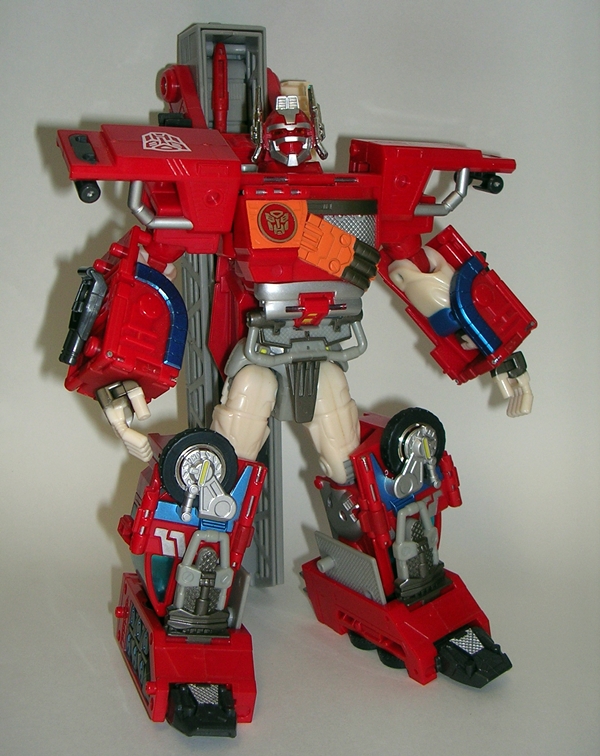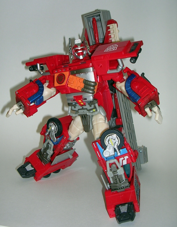 I honestly had no idea how I was going to feel about this toy after he’s been in storage for so long. I’m a little surprised at how awesome I still think he is. I think a lot of my love for him comes from my fondness for Powermaster Prime as the two toys have a lot in common. RiD Prime even has a base mode, which I didn’t bother showing off because it’s pretty crap. No, this guy is definitely not a traditional Prime toy and he’s never been a default Prime in my collection, but I still love this toy a lot. The fact that you can get to his Ultimate mode from that fire truck is still an amazing bit of engineering, even if it does cheat a bit by being a parts-former. Now that I have him out and standing in front of me, I’m not eager to put him back into storage, so I may have to find a place for him on my shelf for a little while.