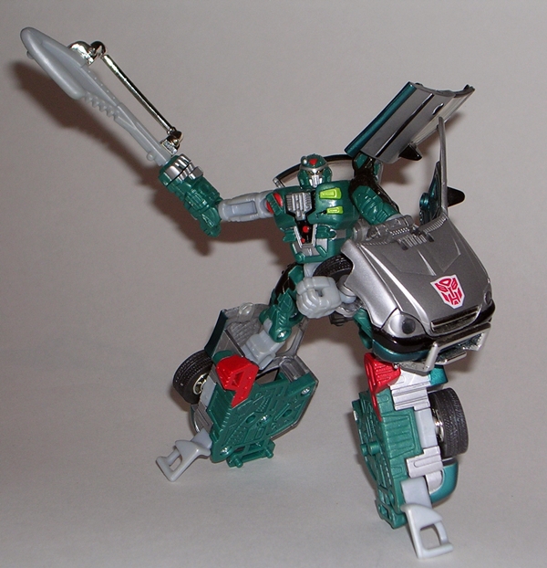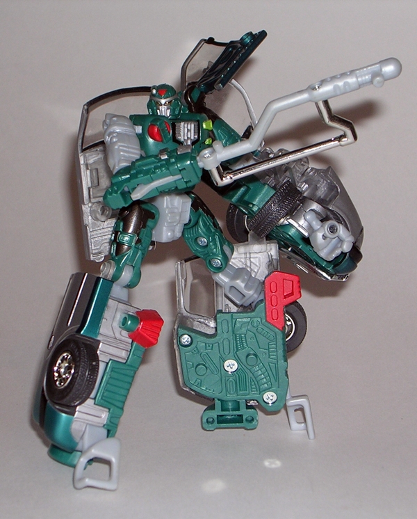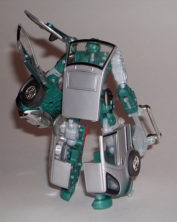 Since Prime is basically the base figure wearing armor, he retains a lot of the same articulation and that’s both good and bad. Yes, you can still pose him, but his hip joints are a little too weak for the huge amount of bulk added to him so he tends to want to do the splits. The giant ladder coming off his back helps to serve as a third leg and stabilize him, but at the same time it really gets in the way of putting him in any great action poses. Also, the more I play around with him, the quicker I get frustrated over the ladder portion wanting to pop off of his torso.