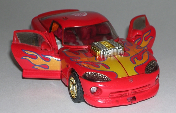 Look, I actually still have the packaging for this guy! It’s a little rough around the edges, but Prime has lived in his box on a shelf ever since I came to the realization that I don’t have the room to display all my Transformers. The RiD line didn’t rely on a whole lot of nostalgia in the presentation. You got a brand new logo and an attractive black and red box. The toy is boxed in its alt mode and you can get a pretty good look at what you’re getting inside.