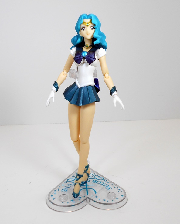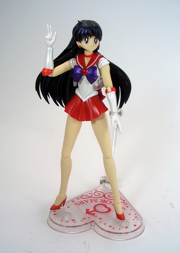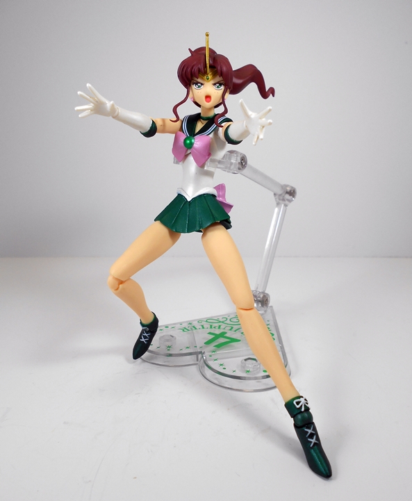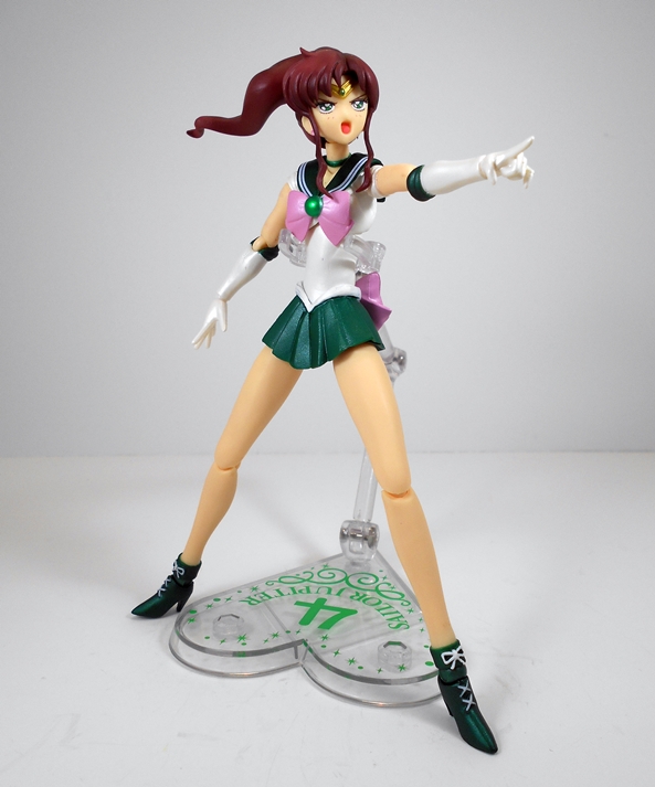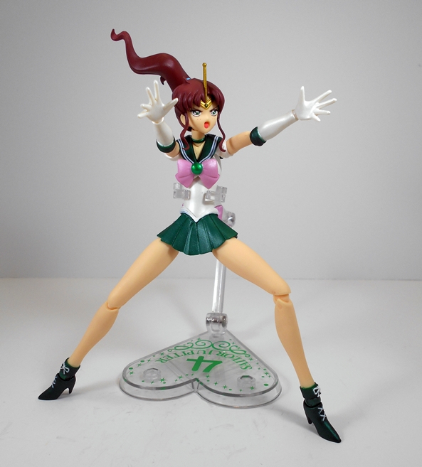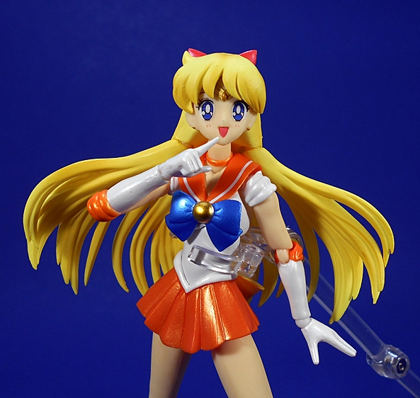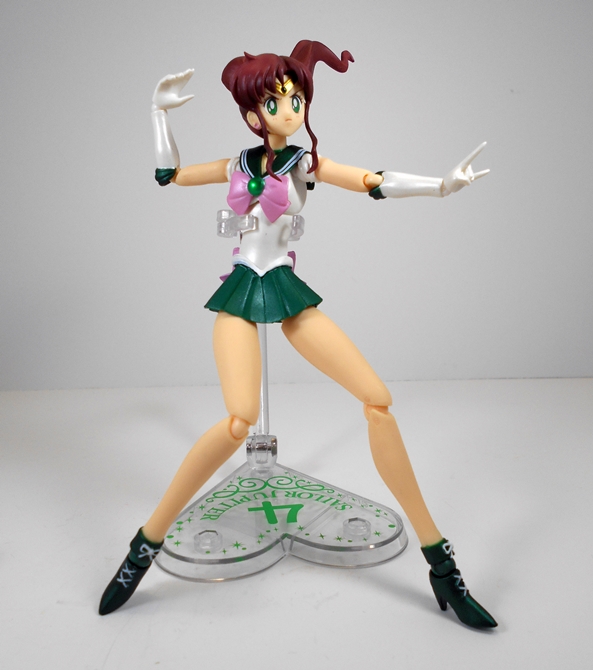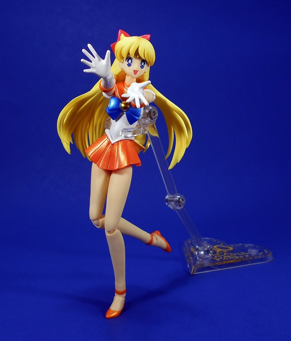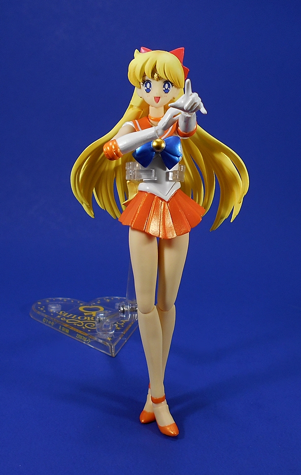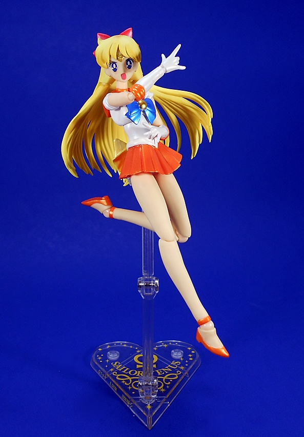 The articulation is pretty standard stuff for an SH Figuart and as always I was able to pull off most of the moves I was looking for. The joints can be a little finicky sometimes, but in the end these figures are so much fun to play with and really hard to put down. The clear heart-shaped figure stand features Sailor Venus’ name and symbols in orange and matches the stands from the other Sailor Scouts. It’s not always easy to make it work with the hair, and I’ll confess that more and more, I’m finding these a lot more clunky than the peg system on Figmas.
