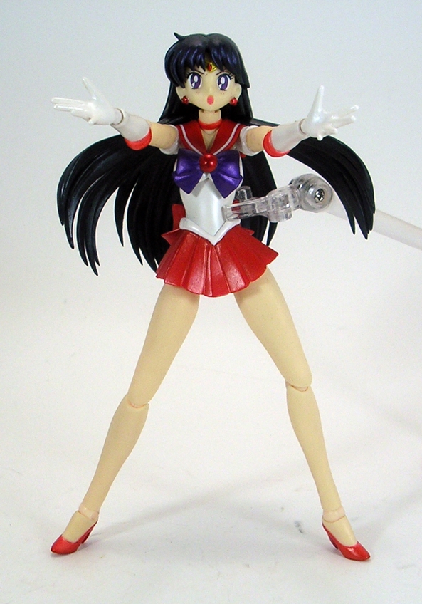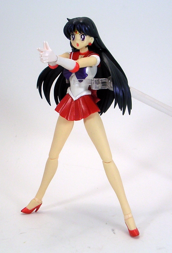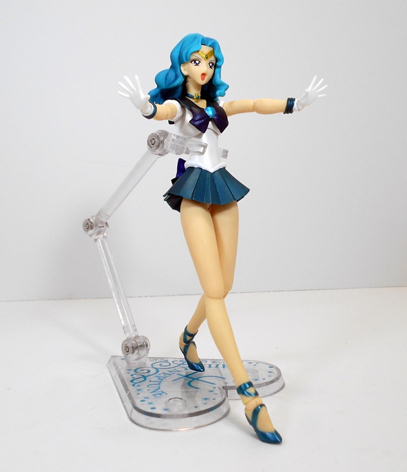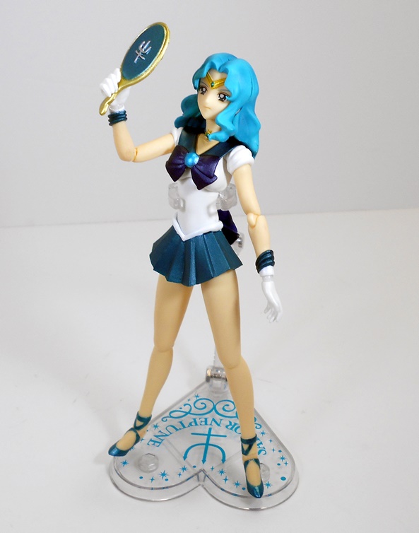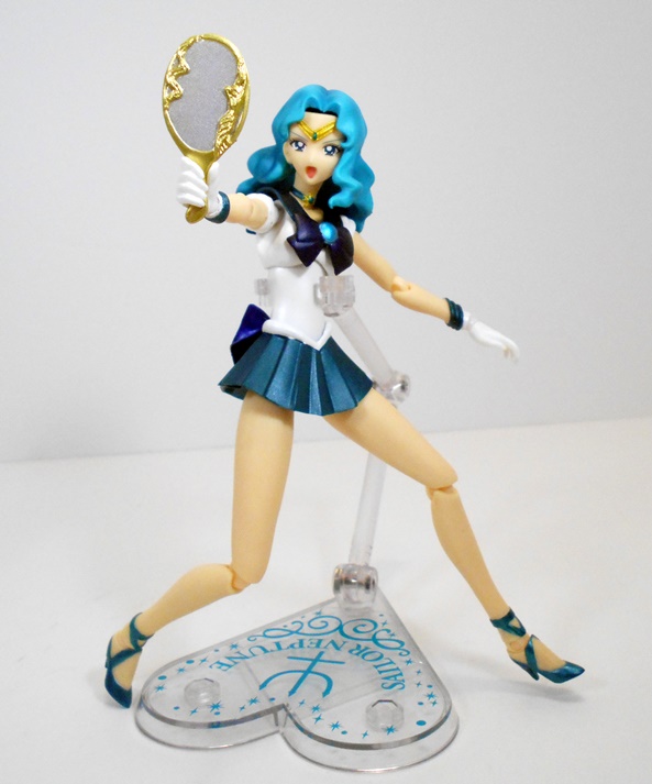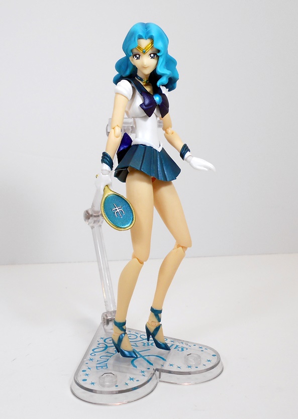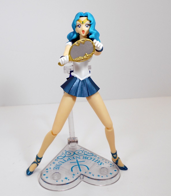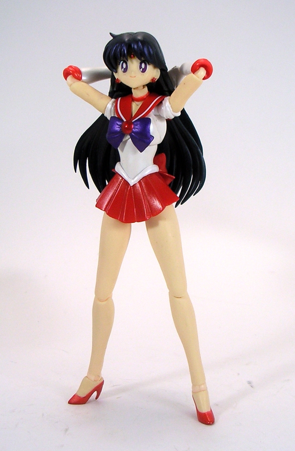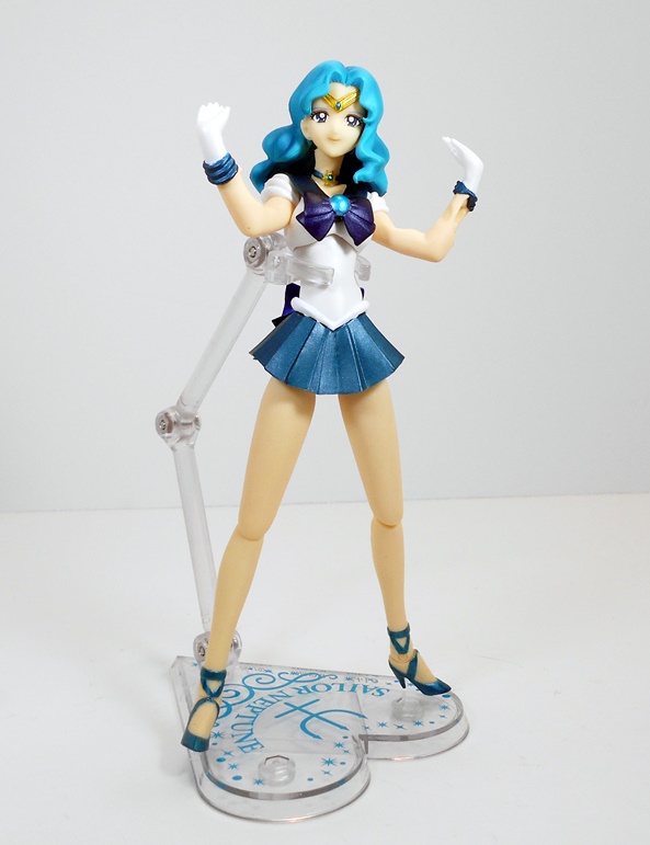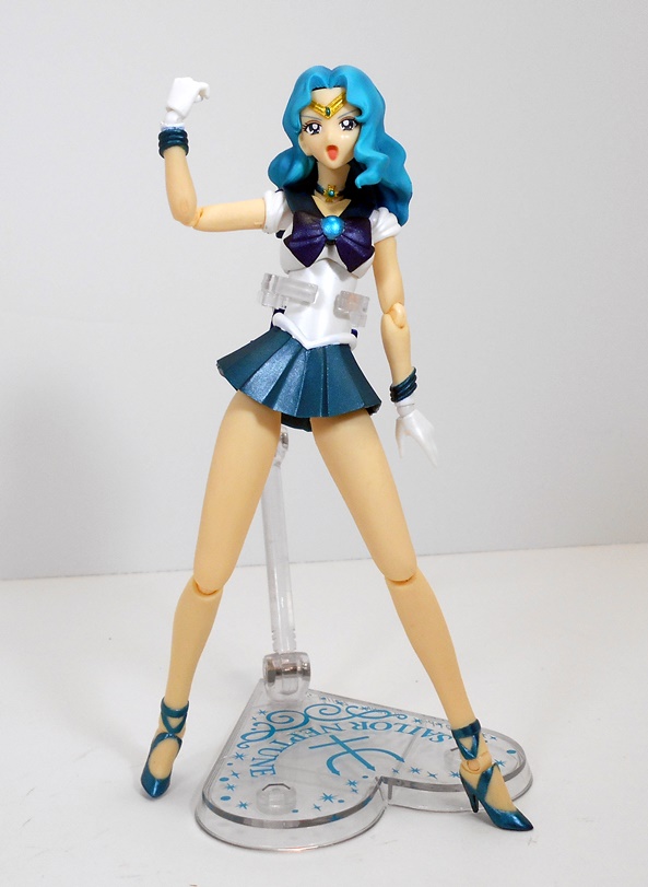The articulation is pretty standard stuff for an SH Figuart and as always I was able to pull off most of the moves I was looking for. The joints can be a little finicky sometimes, but in the end these figures are so much fun to play with and really hard to put down. The clear heart-shaped figure stand features Sailor Venus’ name and symbols in orange and matches the stands from the other Sailor Scouts. It’s not always easy to make it work with the hair, and I’ll confess that more and more, I’m finding these a lot more clunky than the peg system on Figmas.