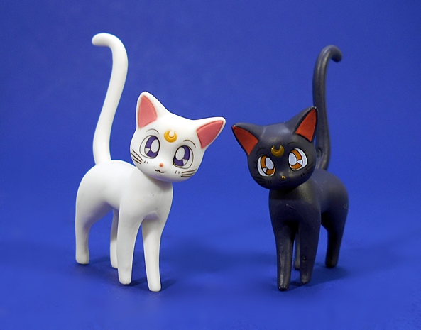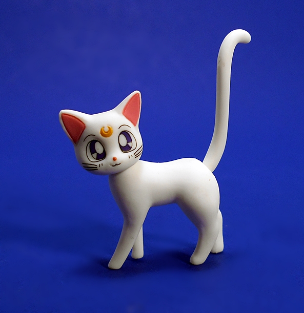 And naturally, you get Artemus the cat. This is more or less the same as Luna, the plastic kitty that came with Sailor Moon. She has articulation in the neck and tail and with a little coaxing he can usually stand on his own.
