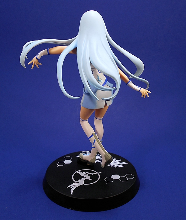 And here she out of the box, plugged into her base, and ready to go. At just under 8 1/2-inches, Inoa is closer to a fully scaled figure than your average prize figure. She actually scales perfectly with SEGA’s “Super Premium” releases. I like the pose well enough. Iona is balancing on her right foot with her left foot kicked up behind her a bit. Her arms are out away from her sides and her hair is kicking up around them. There’s a nice sense of kinetism to the composition and it shows off the figure splendidly.
