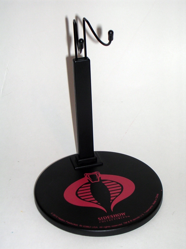 We’re done with Deadpool’s arsenal, but there’s still a couple of extras to look at and to use them Deadpool will require his stand. The stand is pretty stand-ard (haha!) stuff with a crotch-cradle and a hexagonal base. The base has a printed graphic on it, which I notice some people are pretty nit-picky about, especially on the Hot Toys figures. I really don’t mind these at all. It looks great and supports the figure well. In this case, there are also three holes in the post behind the wire stand to accommodate wires for the speech bubbles.