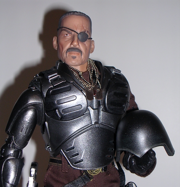 ‘Pool’s automatics are beautiful little pieces right down to the steel finish and the custom painted ‘poolified grips. Sideshow is no stranger to producing top notch looking weaponry in this scale and these guns certainly continue that trend. The receivers do slide back and while it looks like the magazines are removable, I haven’t been able to get mine out and I don’t want to force the issue. Sooooo, maybe and maybe not. The weapons fit comfortably in the holsters and the magnetic retaining flaps keep them in place and the special gun hands are absolutely perfect for displaying these tools of death. Pistols are often the least impressive accessories with these types of figures, but I think these really shine and fit the figure the best.