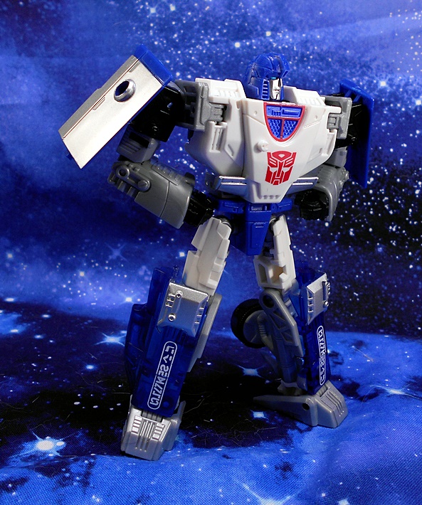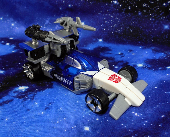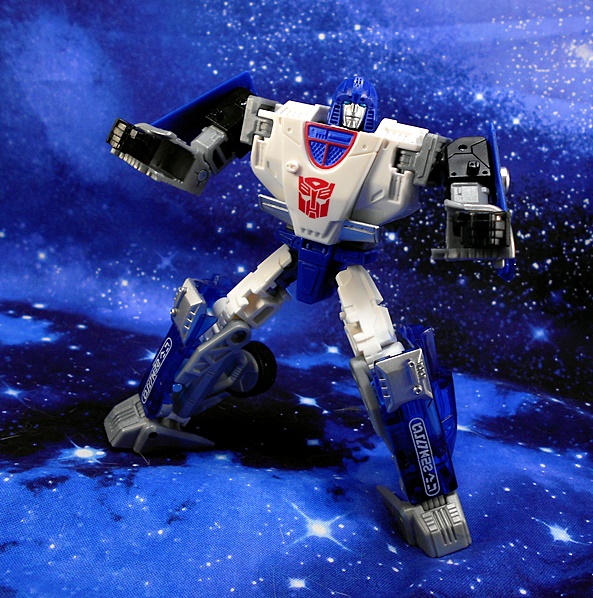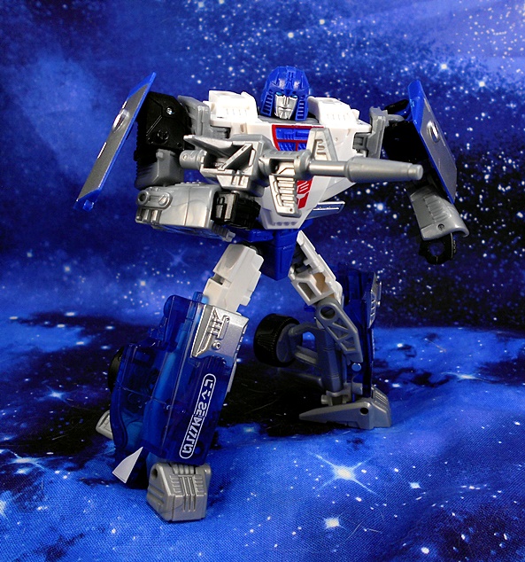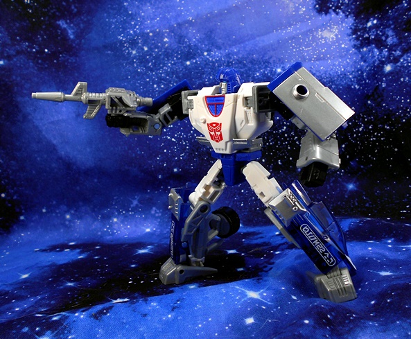 Starscream’s wing guns can be attached to the pegs in his shoulders or forearms. He can even hold them like regular guns if you want. There should be a configuration that pleases everyone, but I prefer them on the shoulders so he can aim them straight down his arm like he did in the Sunbow cartoon. In short, this is a great looking figure with some cool engineering and he’s loads of fun to play with. Let’s take a quick look at the other decos…