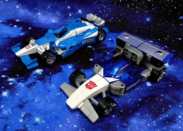 Both Fracas and Shrute transform into double-barrel blasters and while the molds are each different the engineering here is exactly the same. They’re a bit chunky but they work just fine. Shrute has a pair of bulbous yellow blast effects and Fracas has thinner blue electricity effect pieces.