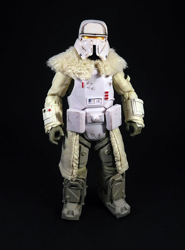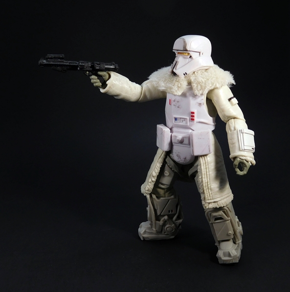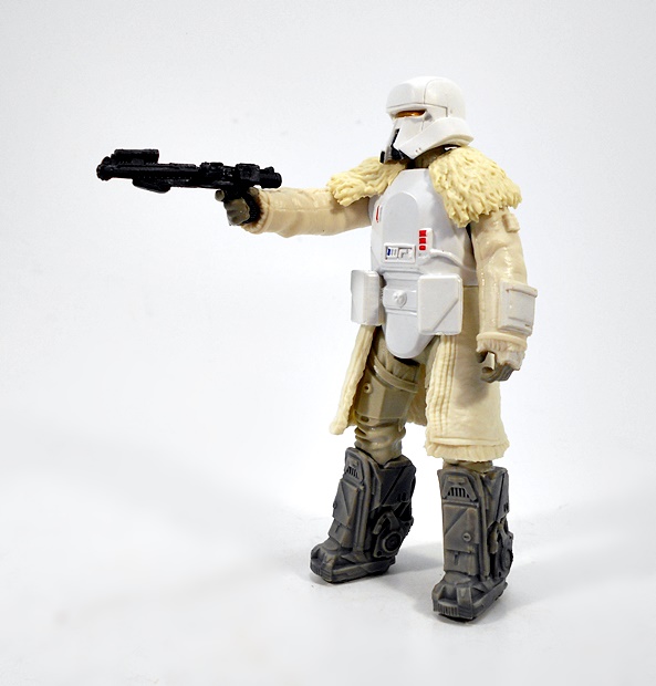 Serving with the 224th Imperial Armored Division, Corporal Han Solo in his Imperial Mudtrooper outfit is a figure that I was anxious to get my hands on. I loved the whole sequence in the film and I really dig this particular uniform. It’s a nice blend of familiar Imperial fashion call-outs with some new stuff thrown in, and Hasbro put an exceptional amount of work into making this figure something special. Here it is stripped down to the basics with the familiar cuirass previously seen worn by the AT-AT Commanders. The backside of the armor features a sculpted backpack sort of thing with some detailed panels. The cuirass is not removable and is sculpted over what looks like a fairly typical Imperial Officer’s uniform tunic, but with added shoulder armor and bicep armor, with the right bicep painted red. The high boots feature a liberal dusting of what is probably supposed to be mud, but it actually looks like it would work well for snow or ash. In addition to the dirtied up boots, there’s some absolutely lovely weathering applied to the cuirass. Even if this was all there was to the figure, I’d have been happy, but there’s plenty of gear to add on to him. But before getting to that…