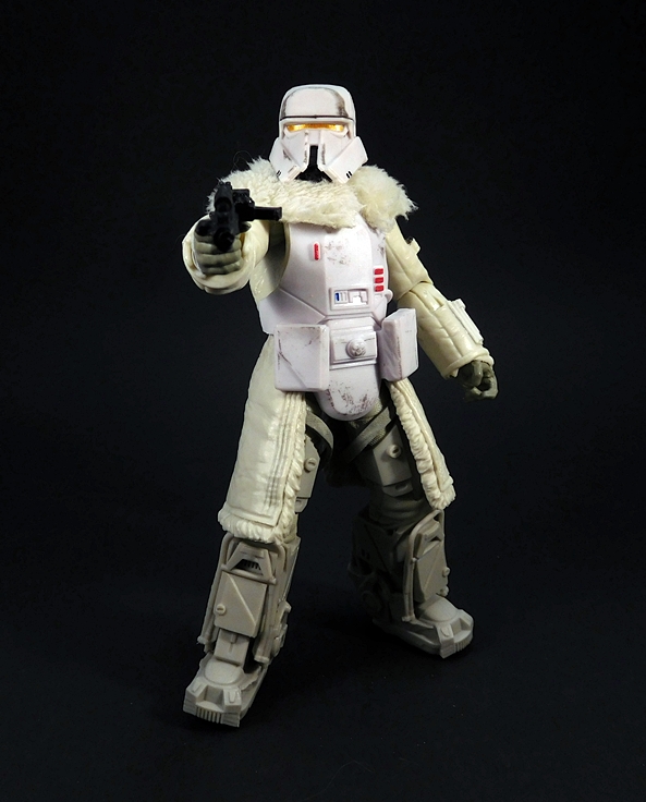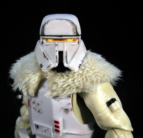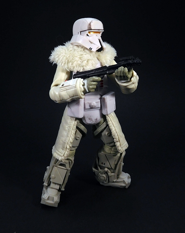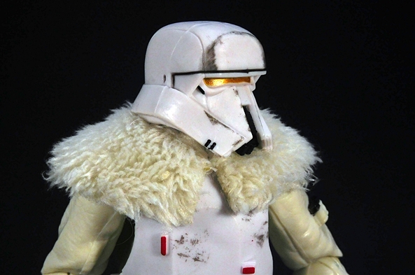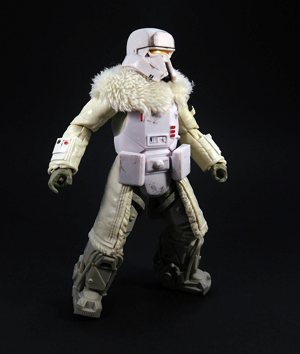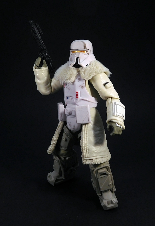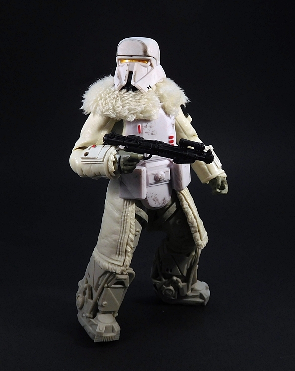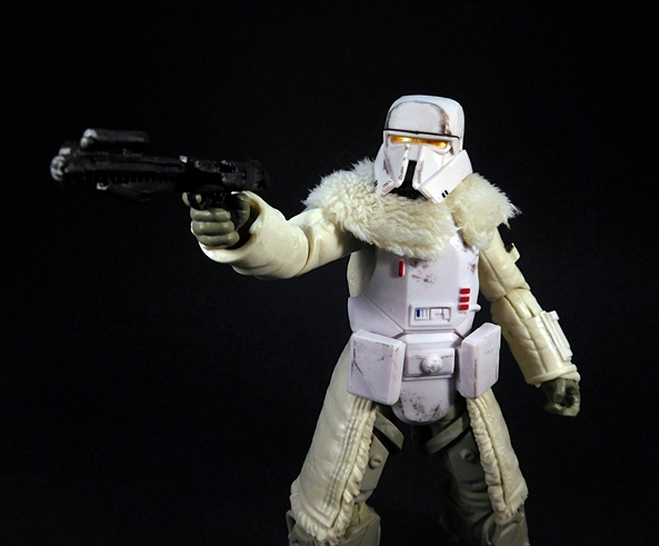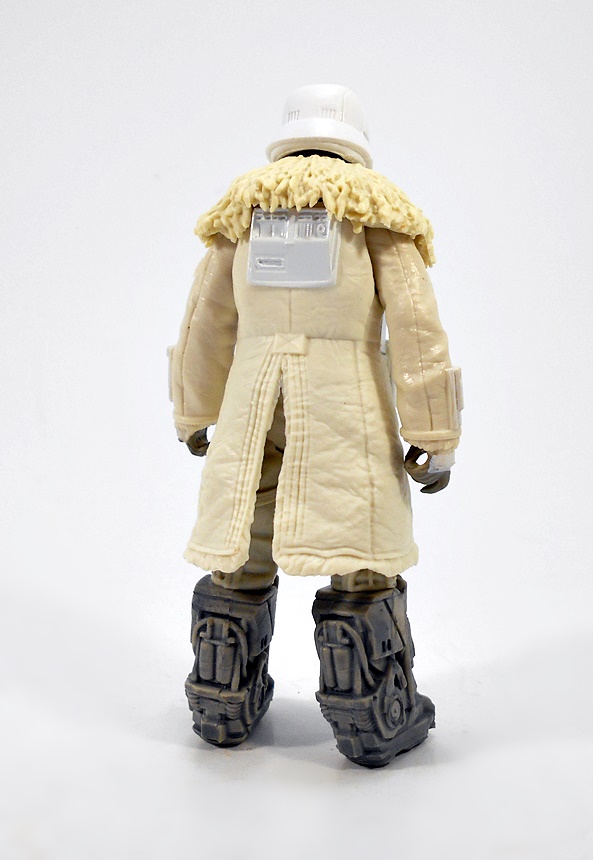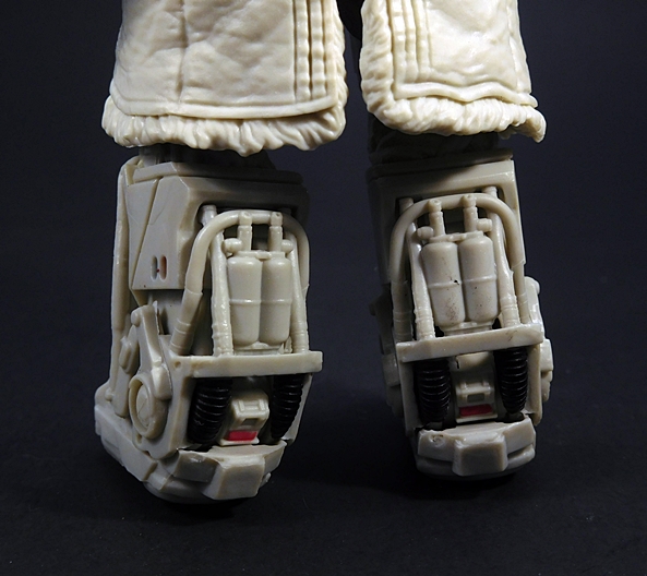 The helmet fits perfectly and includes a chin-strap. The breather mask has two partially sculpted straps that hold it on simply by friction and the tubes run behind the head and plug into the holes on the top of the backpack. Finally, the goggles can be worn up on the helmet or down over the eyes. One of my frequent complaints about the Black Series is that it doesn’t often make use of the larger scale, but here’s a figure that really does. I’m sure all of this could have been done in the smaller 3 3/4-inch scale, but I don’t think it could have been quite as well executed as it is here. I mean, it would have been much easier to just sculpt the goggles, helmet, and mask all as one piece, but I’m happy to see Hasbro rose to the challenge here.