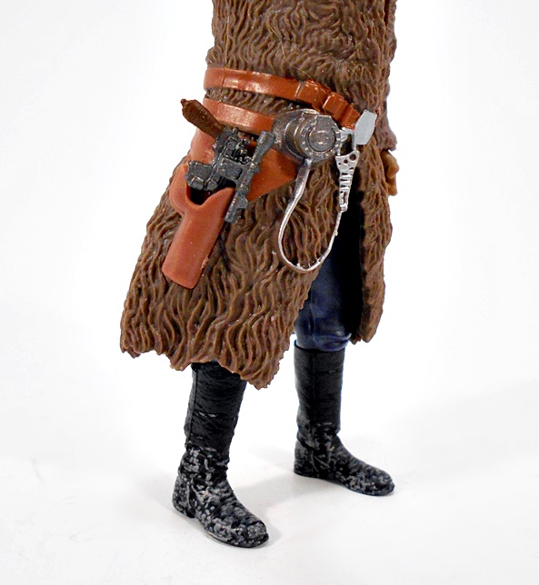 I actually don’t have a whole heck of a lot to say about Chewie here. I was actually going to pass on this figure, but I found it on sale and I decided I needed him to stand beside young Han Solo. It seems to borrow the same body sculpt as the original Black Series Chewie, but with a very different paint job. Gone is the more uniform brown and in its place is a mix of dark brown and light tan. Unfortunately, I don’t think the new paint does the sculpt any favors. It looks very basic and the radical differences in color shades makes this look more like an animated version of Chewie to me. Maybe a wash would have helped. Of course, Chewie’s more familiar bandoleer strap is replaced here with the Y-shaped baldric and satchel.