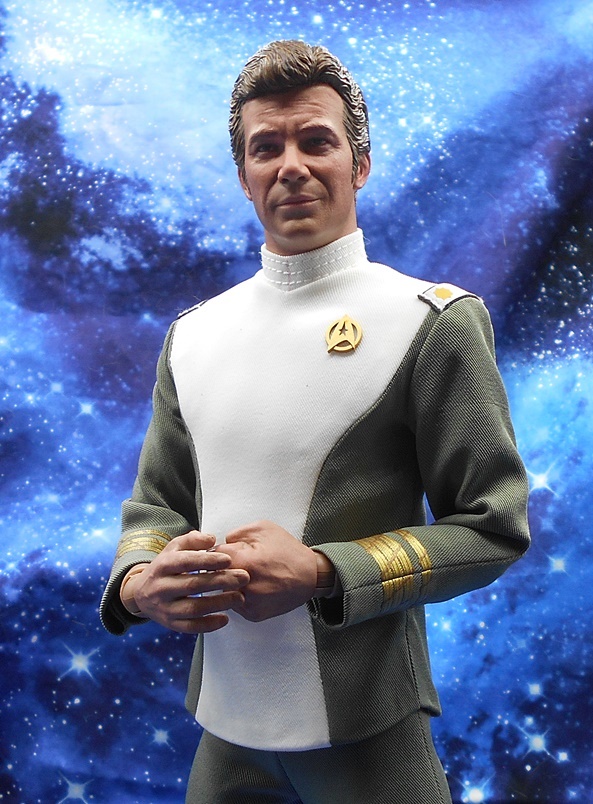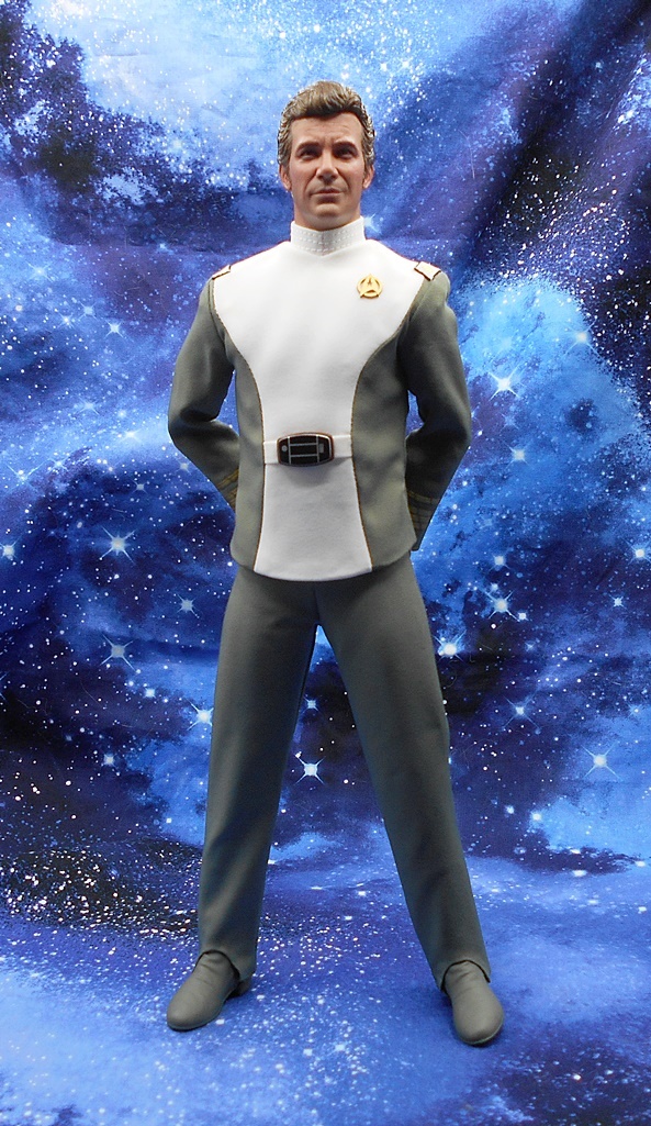 The portrait is outstanding, both in sculpt and paint. They really nailed the likeness of Combs in the makeup, and I often wonder if that’s more or less challenging to do rather than just the straight likeness. Shran sports a powerful brow, deep set eyes, tight lips, and some rather pronounced creasing. The detail in the hair sculpt is extremely sharp and the antenna are cast in a permanent arc, almost pointing at each other. Yeah, it’s a shame they couldn’t have done them in soft plastic with wires to make them poseable. The pale blue skin tone is pitch perfect and there’s some really nice texturing to the skin itself. With over half a dozen of Exo-6’s Trek figures on my shelf, I haven’t had a lot to nitpick when it comes to the portraits, and that’s not going to change today.